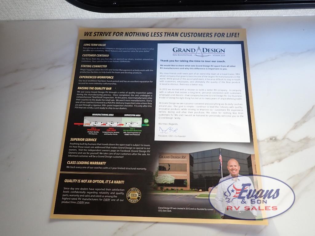 Wonderful Customer Service and Great Pricing. We love our new Grand Design. Took it camping to McCormick's Creek and had a blast. The quality is amazing and we couldn't have asked for a better shopping experience! - James from Petersburg, IN