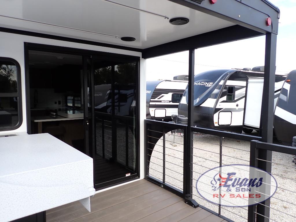 This travel trailer will feel more like home with its rear veranda/porch, dual entry doors, and front master bedroom! There is an outdoor kitchen on the back porch so you can make lunch in the fresh air, and the patio doors lead right into the main living area. Your crew can relax on the L-shaped sofa across from the fireplace, which will make your space more cozy. The U-shaped kitchen counter includes a pull-out table for even more counter space, and the walk-thru bath is easily accessible for everyone to use. You will love having your own space in the master bedroom, and the Versa-Tilt custom king bed will let you sit up in bed to read your book at night. One of the dual entry doors is also found here for added convenience!