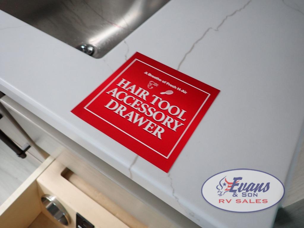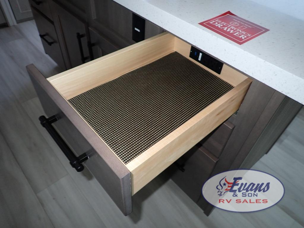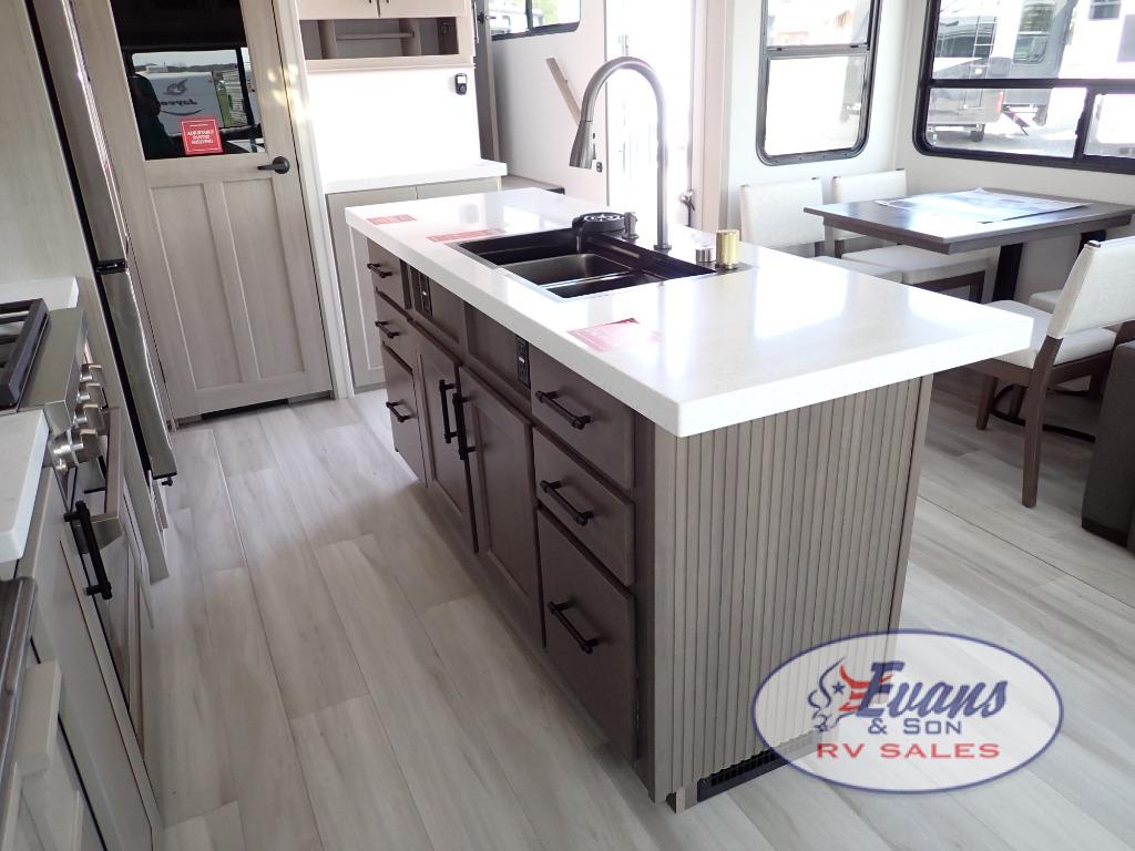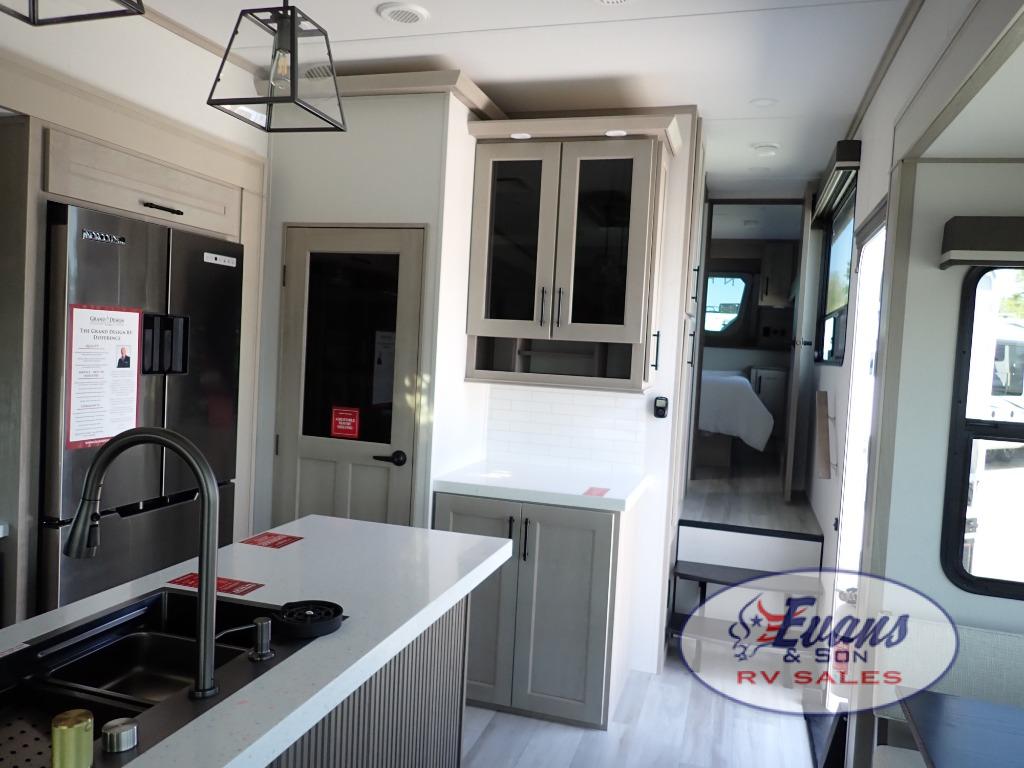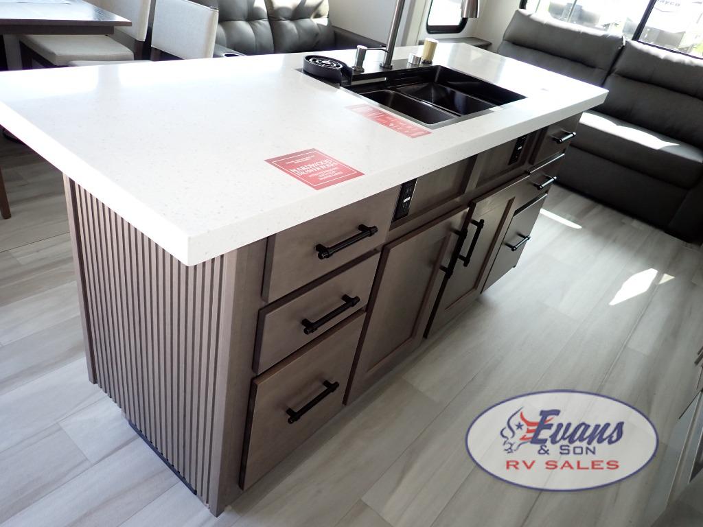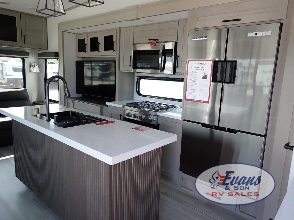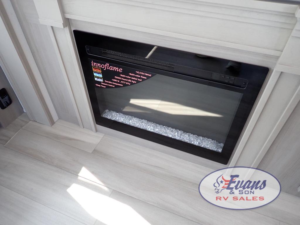 Any Grand Design Influence fifth wheel features five-sided aluminum cage construction with a walk-on roof and a fully enclosed underbelly with heated tanks and storage for all weather camping. For peace of mind, the MORryde CRE3000 Suspension system will provide safe and smooth towing, and the 101" widebody construction offers all the room you need and that is before multiple slides are fully engaged. You will appreciate the Keyed-Alike locks, slam-latch baggage doors with magnetic door catches, exterior security light, and SolidStep entry steps. On the inside, Congoleum flooring, premium roller shades for privacy, a hallway handrail for safety, and nightstands with USB ports to keep all of your electronics fully charged. You will also love the on demand tankless water heater when showering, plus the added heat and ambiance from an electric fireplace, and so much more!