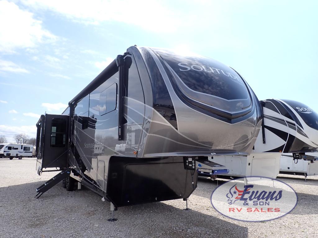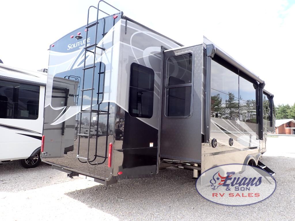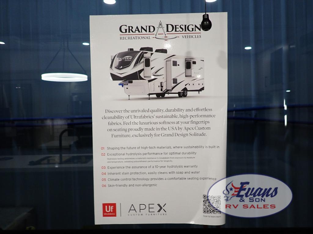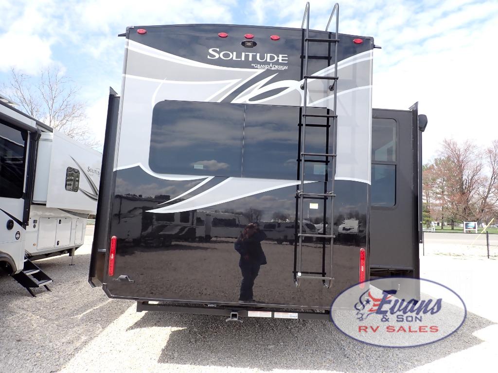 Each Solitude fifth wheel by Grand Design features a 101" wide-body construction, heavy duty 8,000 lb. axles, frameless tinted windows, and high-gloss gel coat sidewalls. You can camp year around thanks to the Weather-Tek Package that includes a 35K BTU high-capacity furnace, an all-in-one enclosed and heated utility center, and a fully enclosed underbelly with heated tanks and storage. Inside, you'll love the premium roller shades, hardwood cabinet doors, solid surface countertops, plus residential finishes throughout to make you truly feel at home. Each model also includes a MORryde CRE3000 suspension system, self adjusting brakes, and a MORryde pin box that will provide smooth towing from home to campground. Affordable luxury is possible with the Solitude fifth wheels; choose yours today!