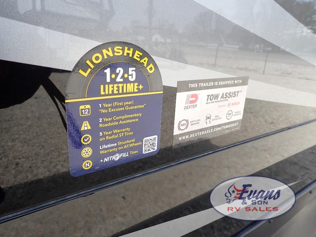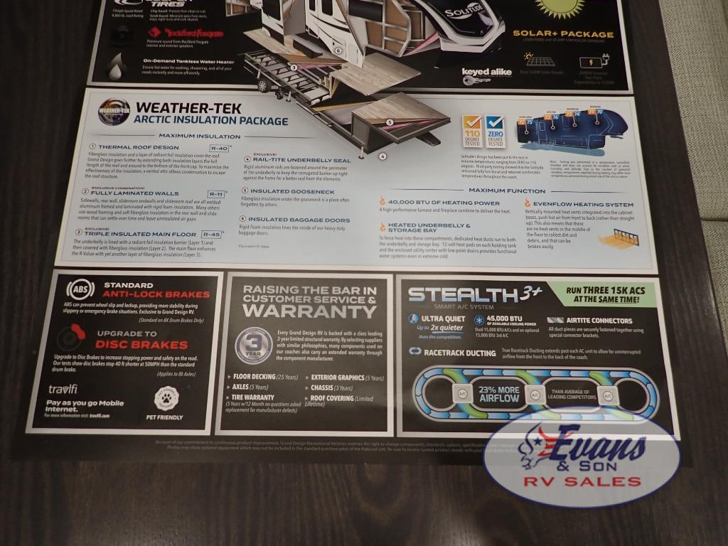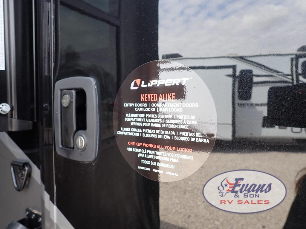 Optioned with: Full Body Paint, Solar Plus Package with additional 330 Watt Solar Panel and 2000 Watt Invertor. King Bed, 8K Axles with Drum Brakes, 3rd 15000 BTU A/C w/heat Pump, and Generator Prep.