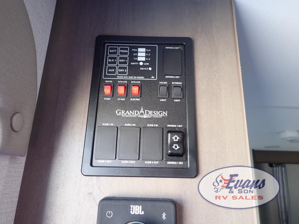 With any Transcend One travel trailer by Grand Design, you will enjoy lightweight towing thanks to their single-axle. There are many interior comforts to make camping easier than ever, such as a deep seated stainless steel sink and high rise faucet with a pull-down sprayer, solid wood drawer fronts, and a 6' 6" interior height. Each model is constructed with a heated and enclosed underbelly with suspended tanks, a moisture barrier floor enclosure, and Thermofoil over the roof and front cap for added protection. A JBL head unit and exterior speaker will let you listen to tunes as you visit under the power awning with an LED light. If you plan to go off the beaten path, take a look at the optional Solar Package that comes with 600W solar prep, an 8 cu. ft. 12V refrigerator, solar disconnect, and more!