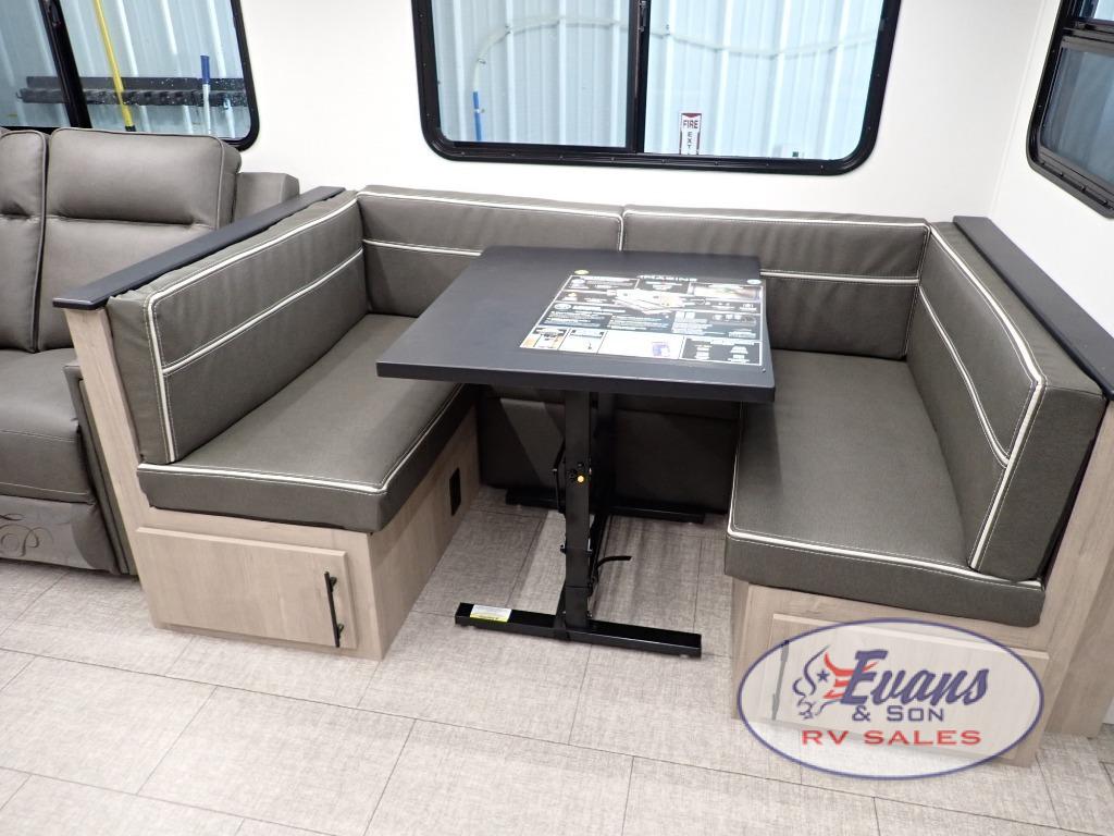 Optioned with: 50 Amp Service w/2nd A/C Prep, 2nd A/C, Booth Dinette, and Theater Reclining Seats.