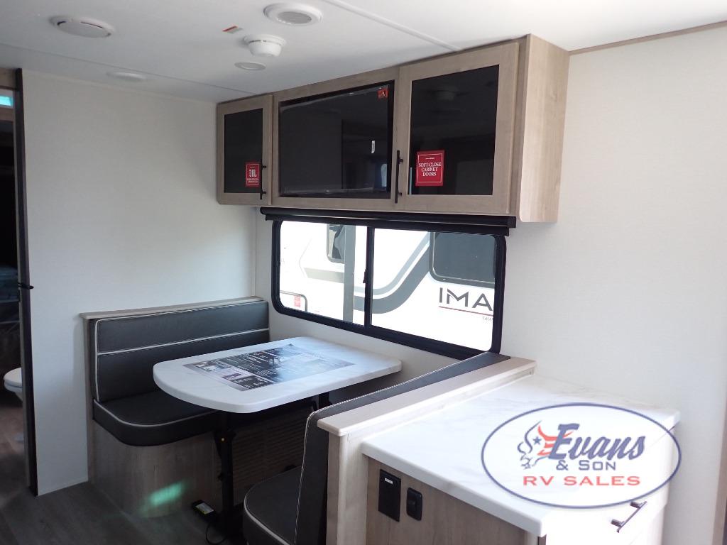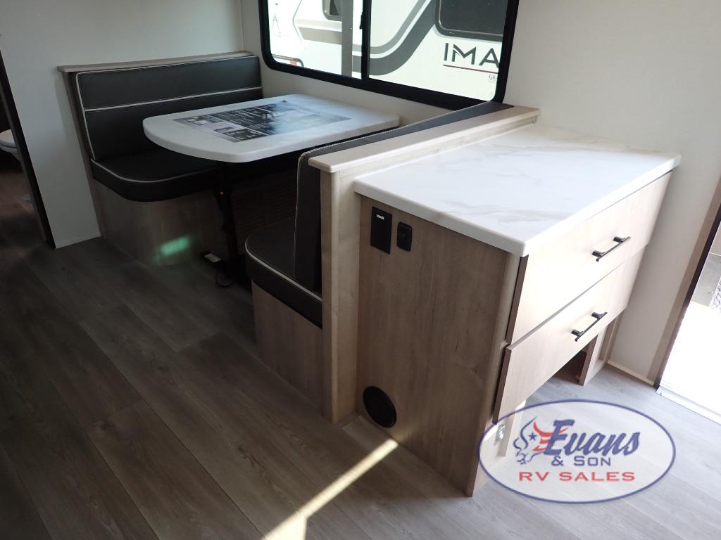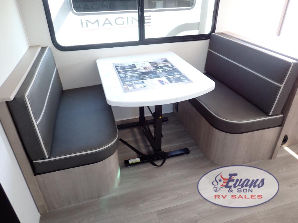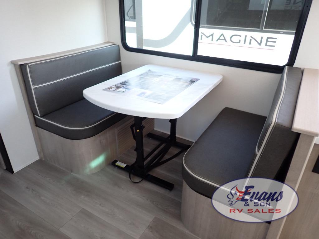 Treat yourself to a weekend of fun in this Imagine XLS travel trailer! Whether it's just you and your spouse, or you've chosen to bring along a group of friends, this trailer will meet the need. The front bedroom can sleep two people on the walk-around queen-size bed. The bedroom is quite functional because it not only contains the second exterior entry door, but it also has a private entrance into the walk-through bathroom since it is located on the other side of the bathroom. The booth dinette is functional too because it can transform from a dining location into a sleeping location, and the theater seating is directly across from the LED TV for easy viewing.