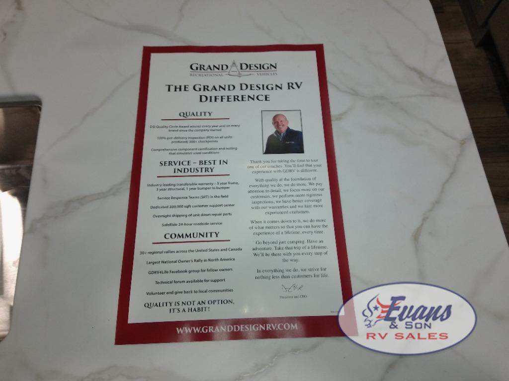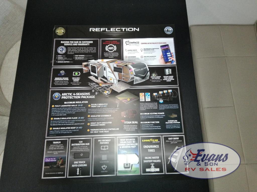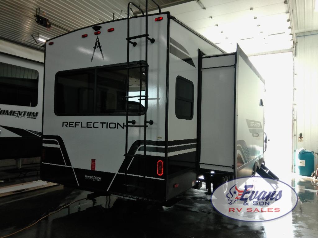 Each Reflection 100 Series fifth wheel by Grand Design is affordable and packed with luxury for unforgettable camping memories! The MorRyde CRE3000 suspension system and Goodyear Endurance tires will provide smooth towing from home to campground. And the solar package with a 180W solar panel, 60 Amp charge controller and 12V refrigerator will allow you to camp for longer periods of time and in more locations! A heated and enclosed underbelly with circulating heat is included in the Arctic 4-Seasons Protection Package, along with a double insulated roof and front cap, and thermofoil insulation under the holding tanks so you can camp all year long if you choose. You will appreciate having an on-demand water heater for hot showers after exploring, and the universal all-in-one docking station will let you monitor your RVs tanks levels and functions with ease. These models also include many luxurious interior features, such as premium Congoleum flooring, pleated shades, residential cabinetry, and matte black fixtures and hardware. Don't let the Reflection 100 Series fifth wheels pass you by!