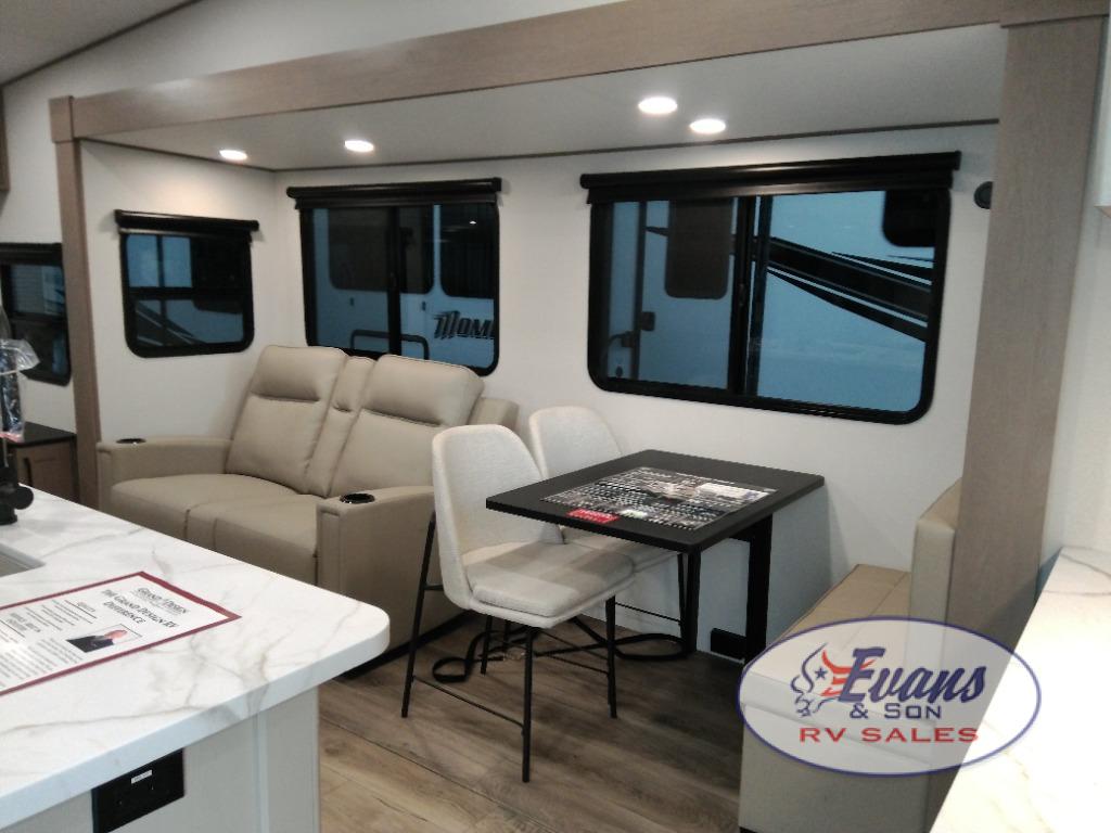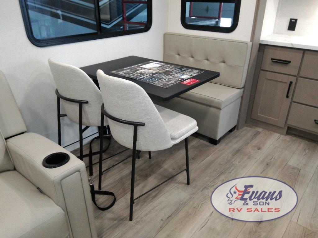 Optioned with: 2nd A/C 8000 BTU, and Swivel Dinette w/2 Chairs and Storage Ottoman.
