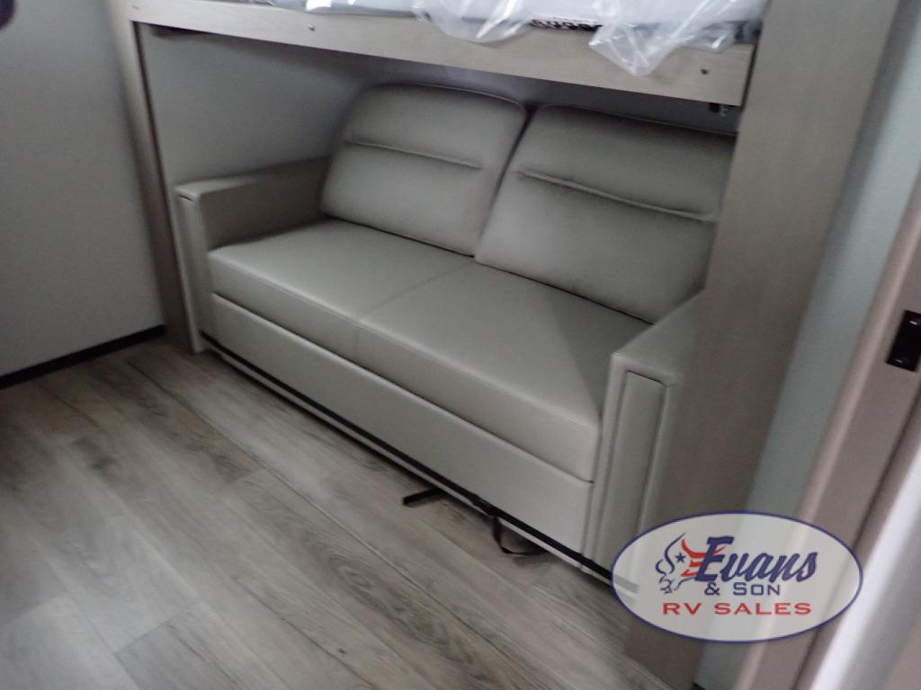 - Rear Private Bunk Room with 2 Large Bunks and Tri-Fold Sofa