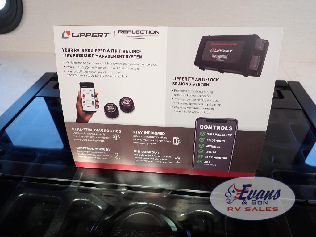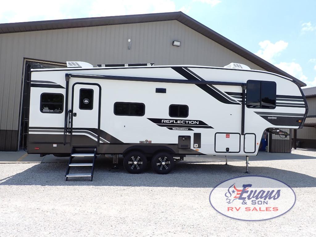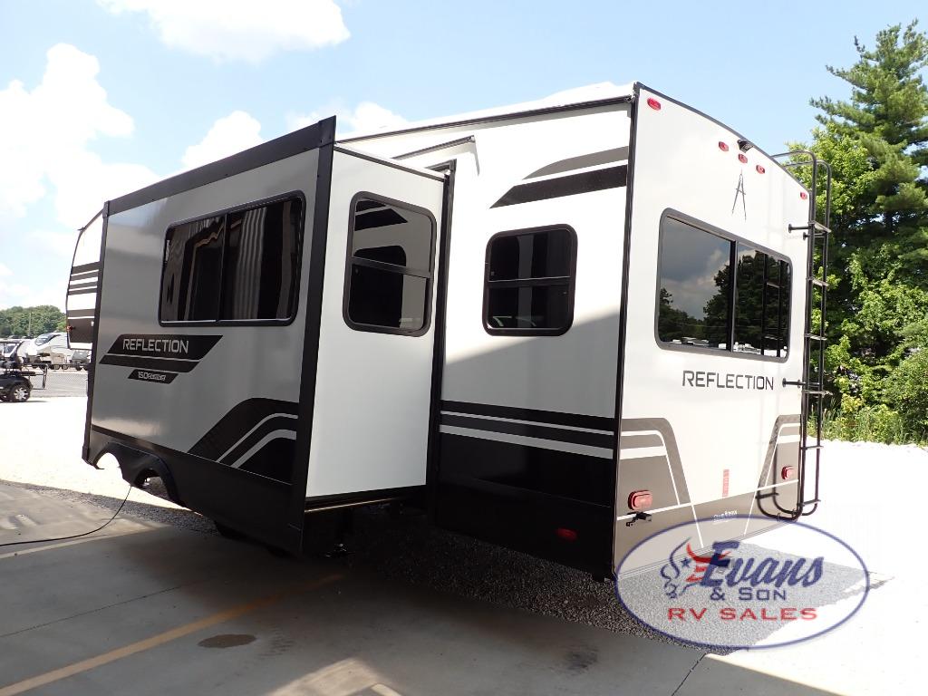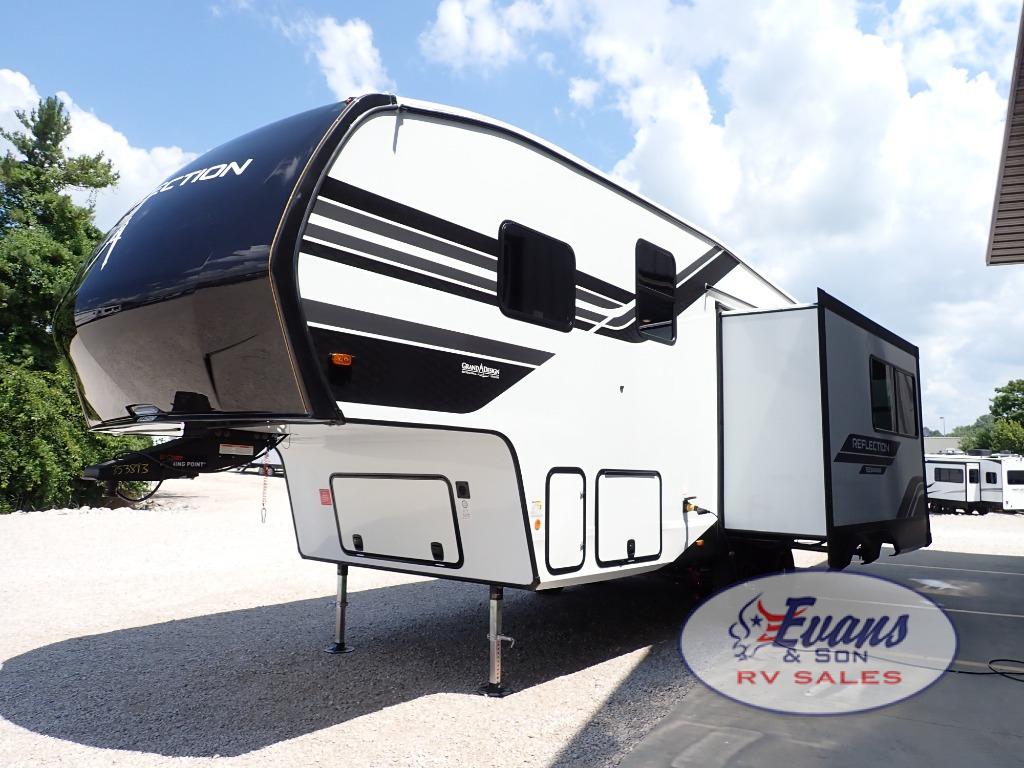 Feel right at home in this Reflection 150 Series with a private bedroom that includes a walk-around queen bed with storage on each side, windows, and a space savings sliding door. The full bathroom offers a walk-in shower, storage for your linens and a sliding door for easy access. When you get hungry, the cook will have an L-shaped kitchen area to make meals, plus full amenities including a 30" microwave, a flip-up counter extension, a pantry for your dry goods and a 16 cu. ft. refrigerator to store lots of food and cold beverages. You can dine at the rear U-shaped dinette lounge and enjoy the view out of all the windows or outside under the 18' electric awning. And the 78" theatre seating will be a nice place to relax and watch the 40" LED HDTV.
