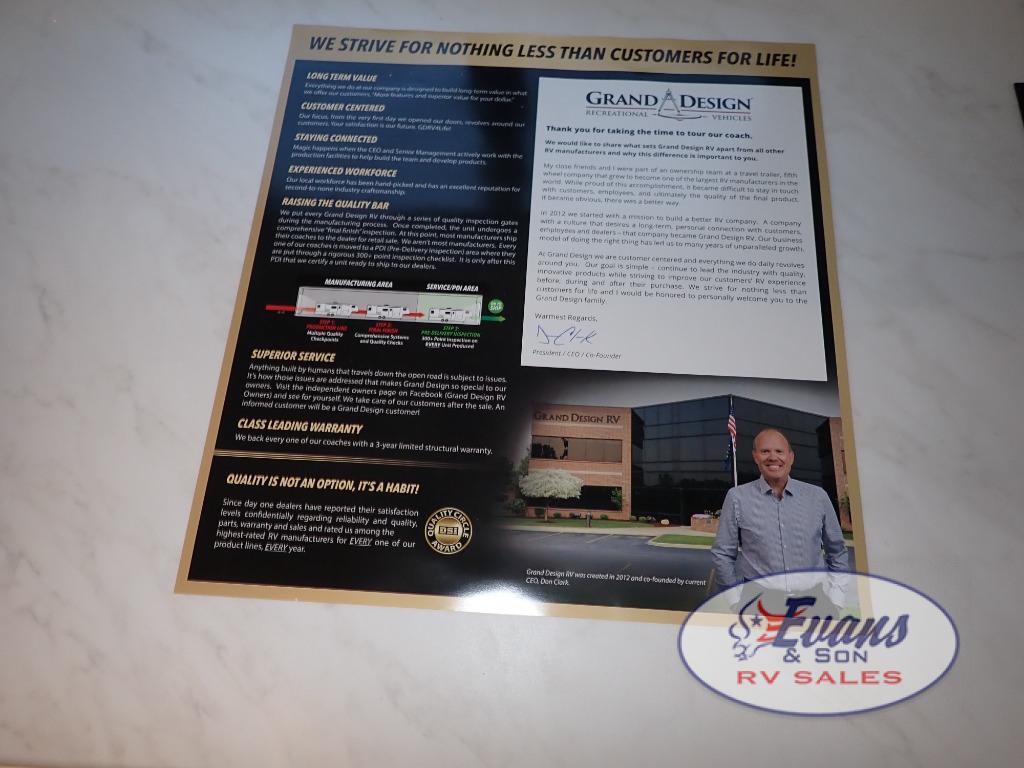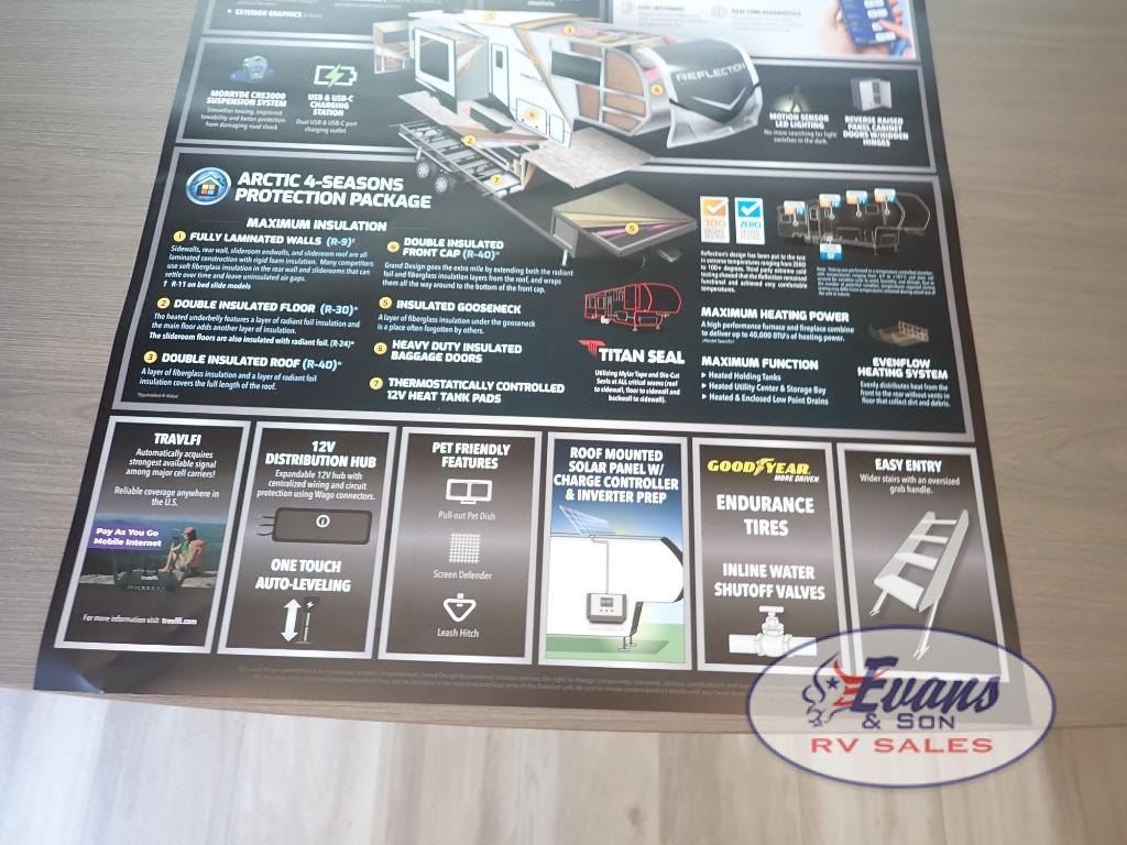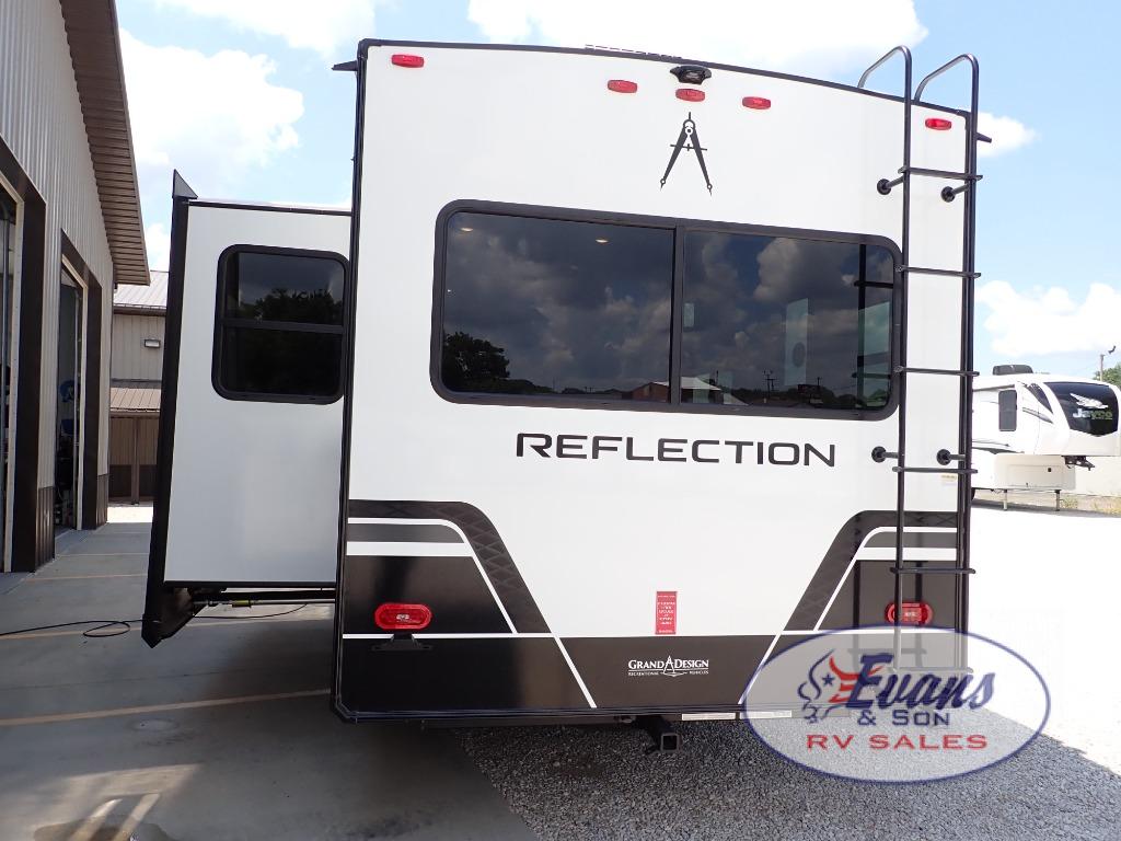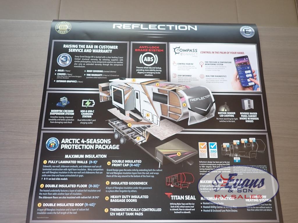 With any Reflection 150 Series fifth wheel by Grand Design, there is more available payload capacity and a broader range of half-ton trucks capable of towing this fifth wheel, and no slider hitch is needed thanks to the 90-degree turning radius which makes them short bed friendly and easier to tow. The mandatory Ultimate Power package provides a "One-Touch" automatic leveling system and a detachable power cord with LED light for easy setup, plus motion sensor pass-through lighting and entry lighting, and the Tire Linc TPMS will help you stay safe on the road. The interior offers residential luxury from the cabinetry and premium Congoleum flooring, to the booth dinette and residential-style window treatment. Make your refined decision today!
