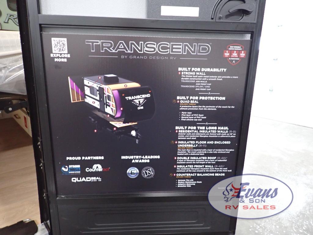 With any Transcend One travel trailer by Grand Design, you will enjoy lightweight towing thanks to their single-axle. There are many interior comforts to make camping easier than ever, such as recessed lighting, residential countertops, and a 6' 6" interior height. Each model is constructed with a heated and enclosed underbelly with suspended tanks, a moisture barrier floor enclosure, and Thermofoil over the roof and front cap for added protection. And a JBL sound system will let you listen to tunes as you visit under the power awning with a Fusion light!