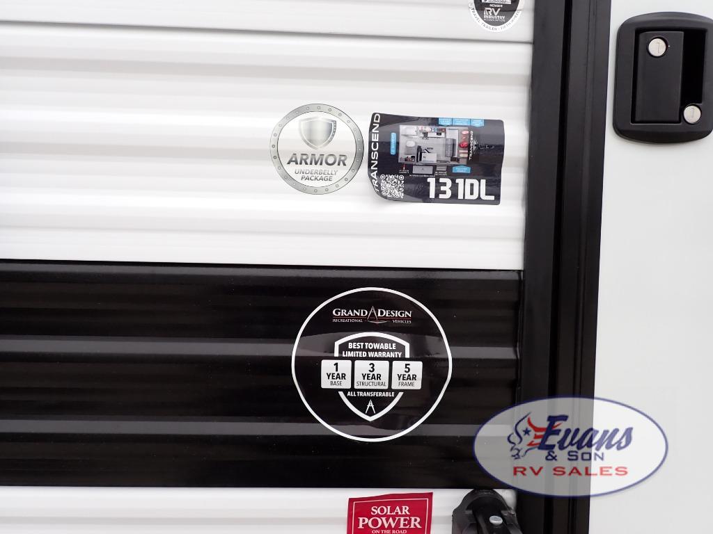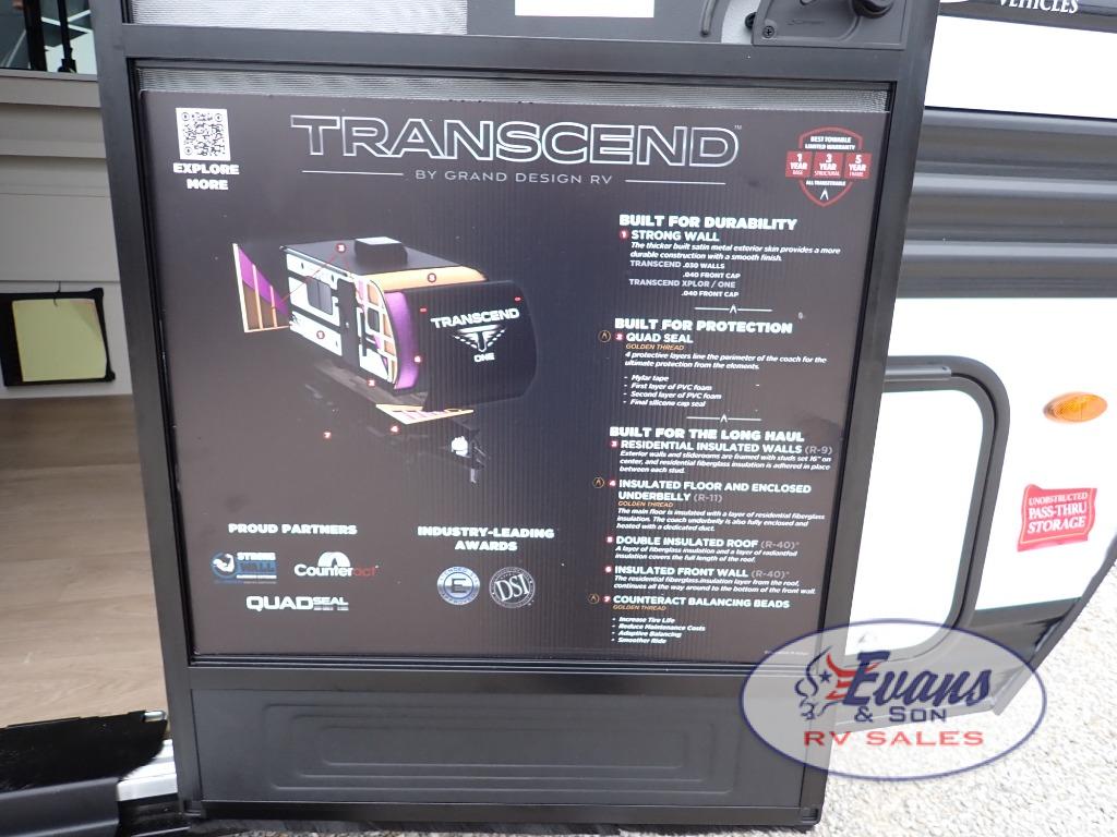 With any Transcend One travel trailer by Grand Design, you will enjoy lightweight towing thanks to their single-axle. There are many interior comforts to make camping easier than ever, such as recessed lighting, residential countertops, and a 6' 6" interior height. Each model is constructed with a heated and enclosed underbelly with suspended tanks, a moisture barrier floor enclosure, and Thermofoil over the roof and front cap for added protection. And a JBL sound system will let you listen to tunes as you visit under the power awning with a Fusion light!