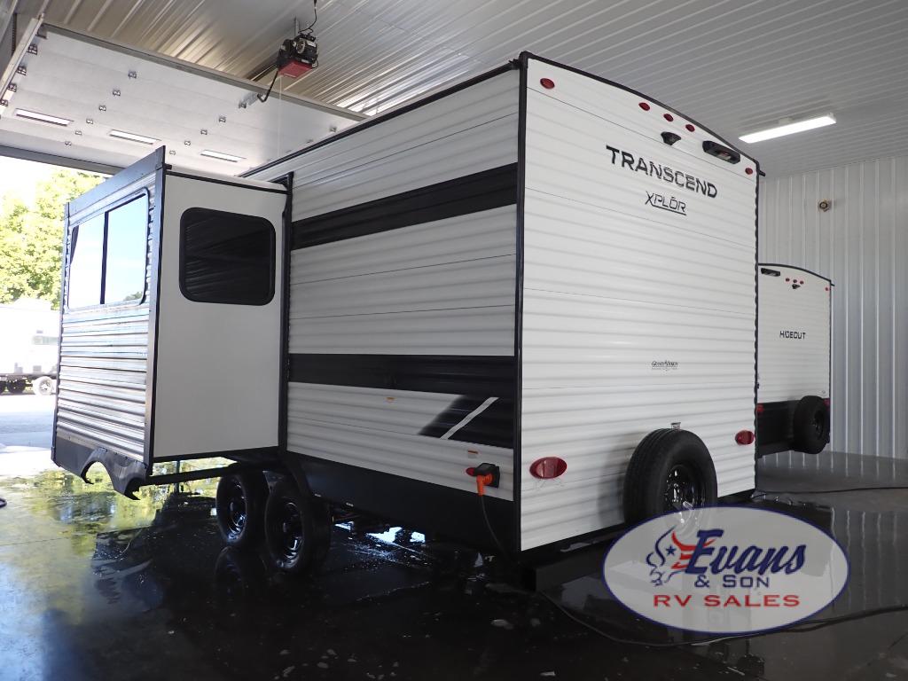 The only thing you need to worry about when you go camping is where to park this Transcend Xplor travel trailer! You'll have everything you need each day to prepare meals, including a three-burner cooktop, a microwave oven, and plenty of counter space. The front queen bed includes overhead cabinets for your books, plus underbed storage for shoes! Choose the optional theater seats in place of the dinette, and you won't even know you're away from home!