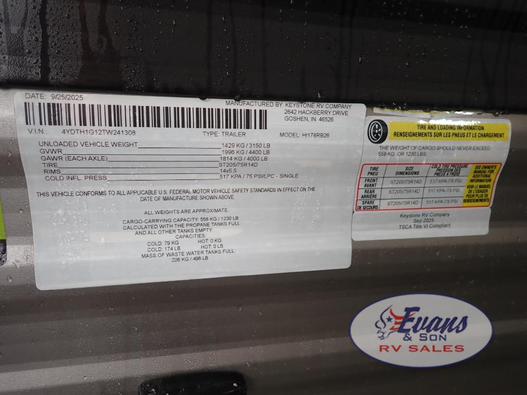 New 2026 Keystone RV Hideout Mini 178RB