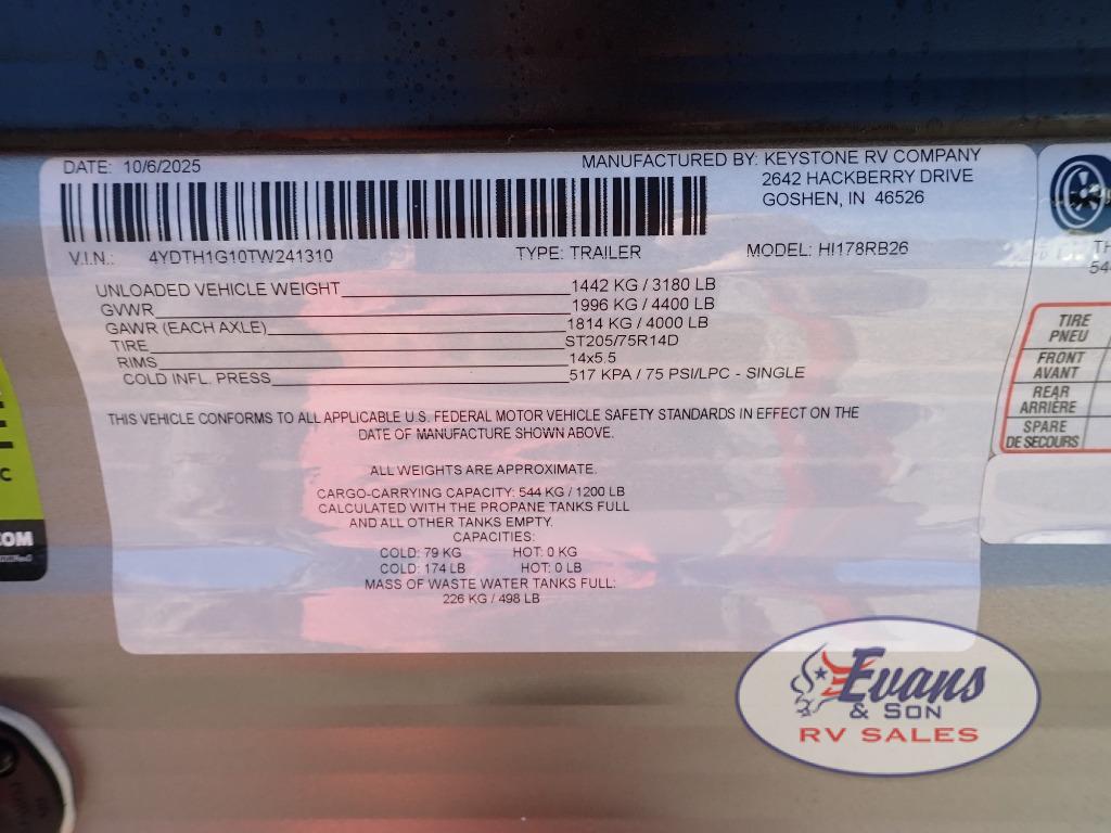 Evans RV Sales is not responsible for any misprints, typos, or errors found in our website pages. Any price listed excludes sales tax. Manufacturer pictures, specifications, and features may be used in place of actual units on our lot. Please contact us @812-354-2979 for availability as our inventory changes rapidly. All calculated payments are an estimate only and do not constitute a commitment that financing or a specific interest rate or term is available.