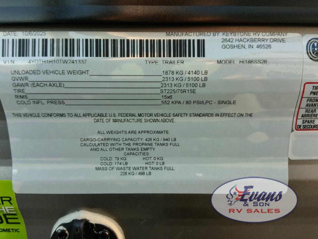 New 2026 Keystone RV Hideout Mini 186SS