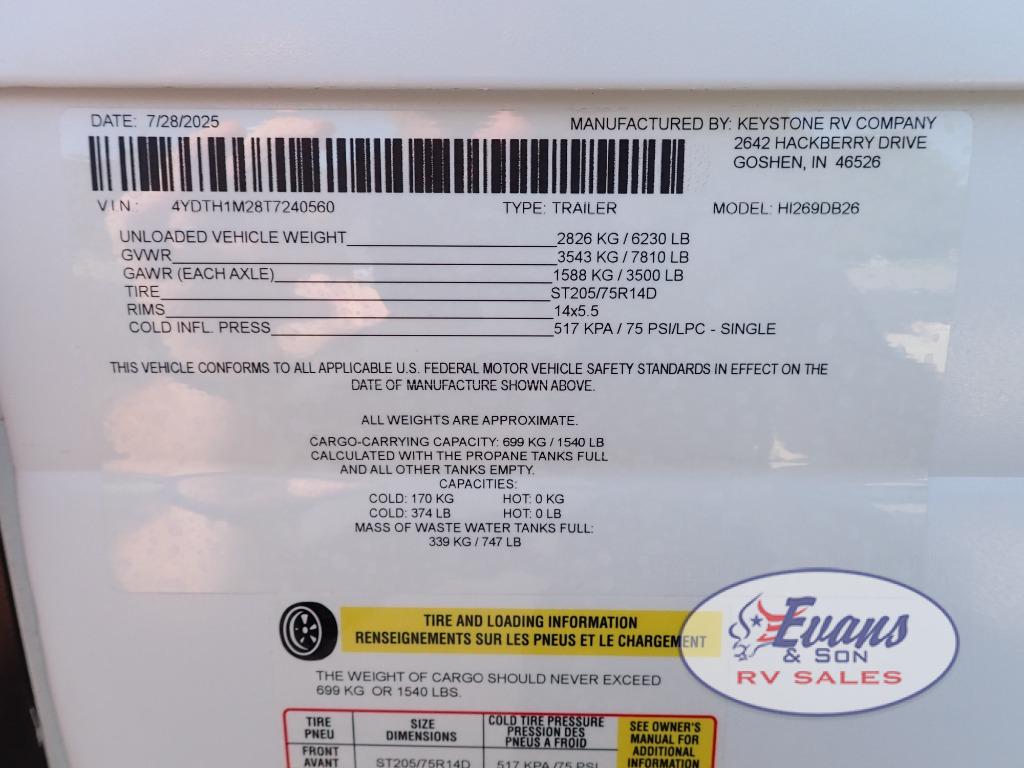 Keystone Hideout Sport travel trailer 269DB highlights: