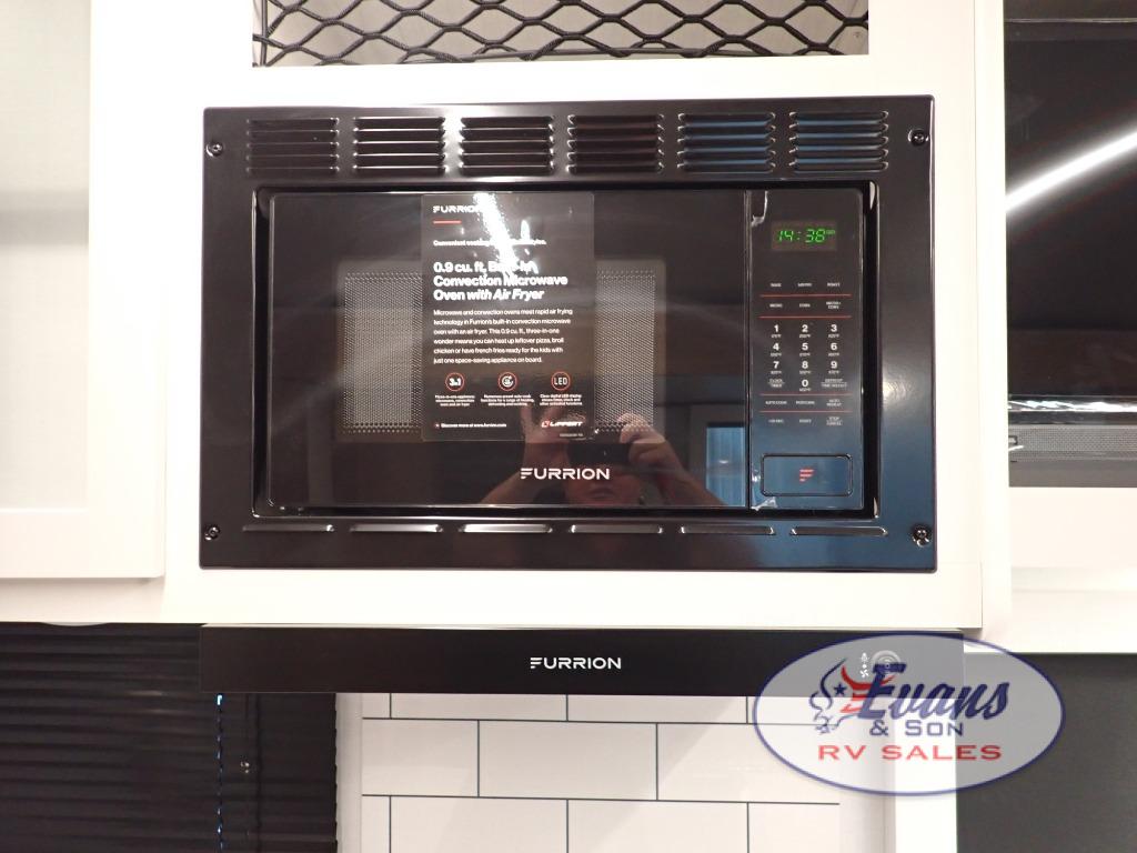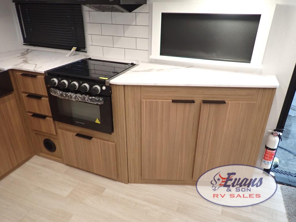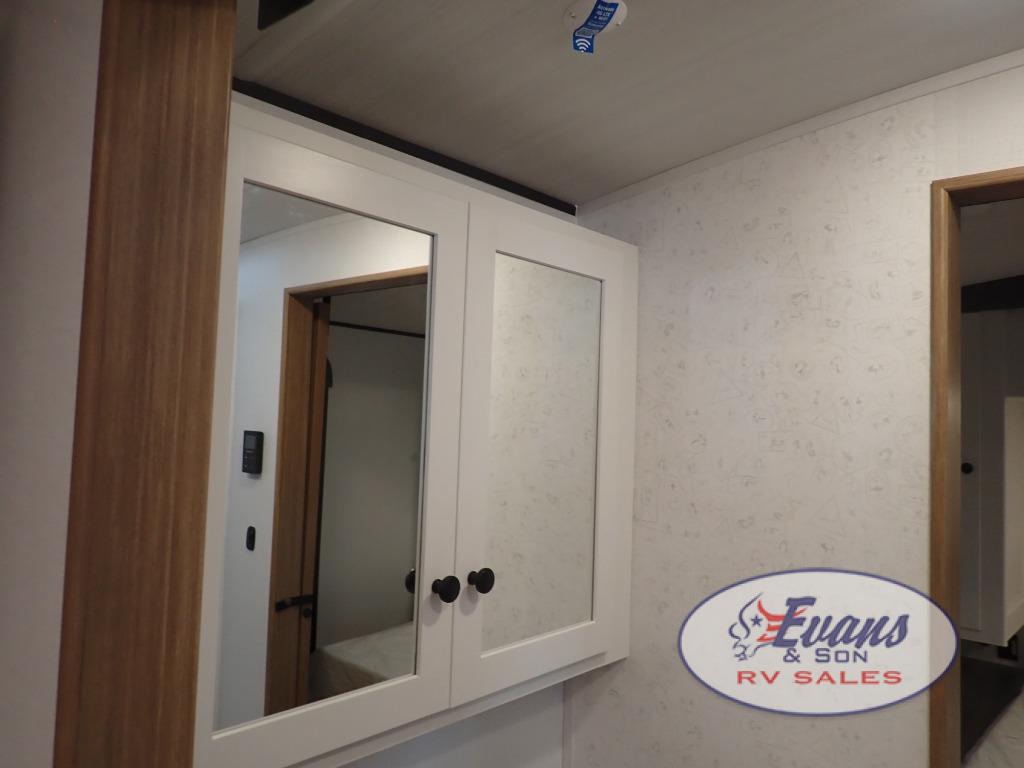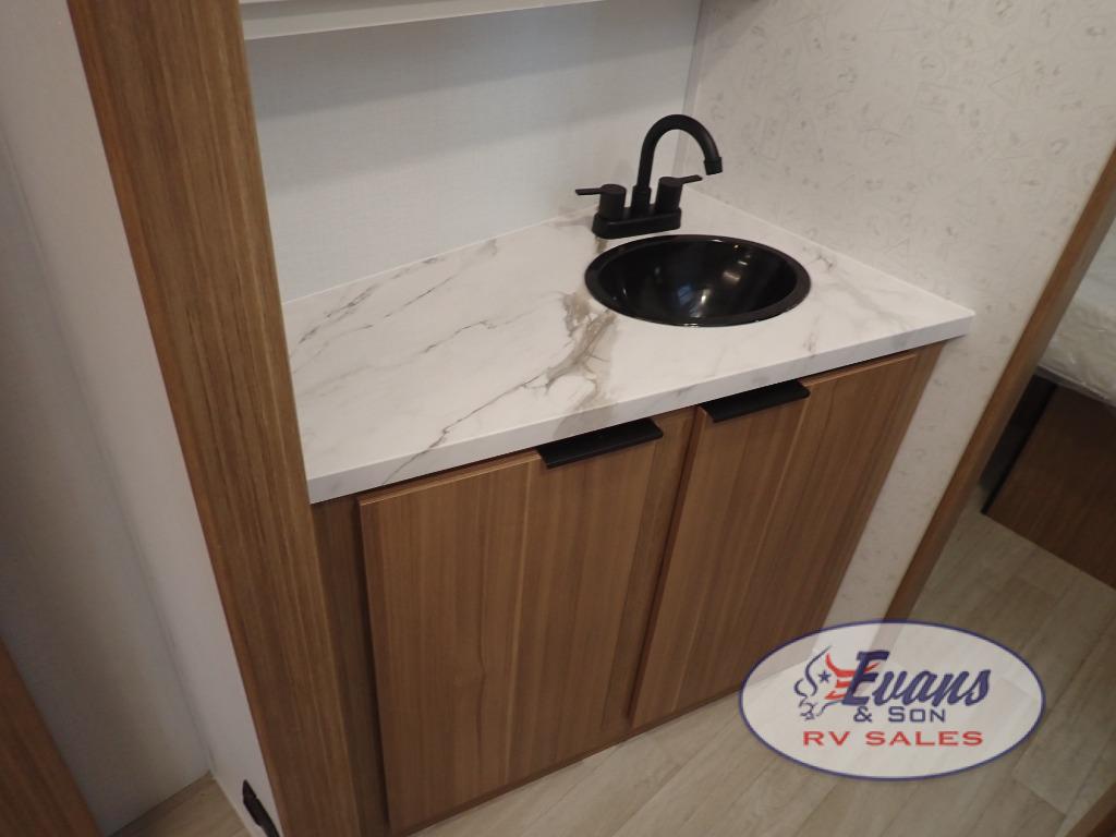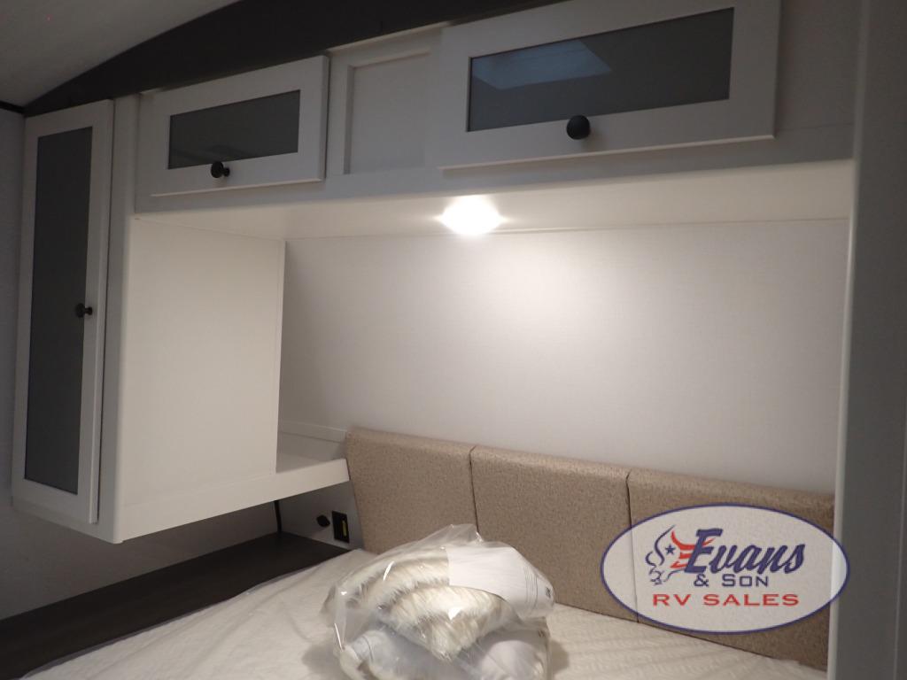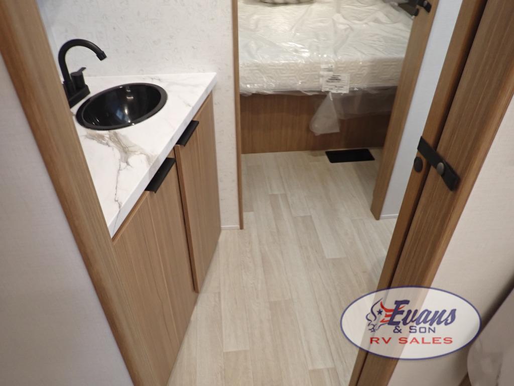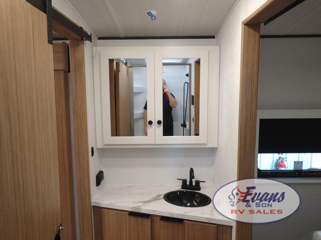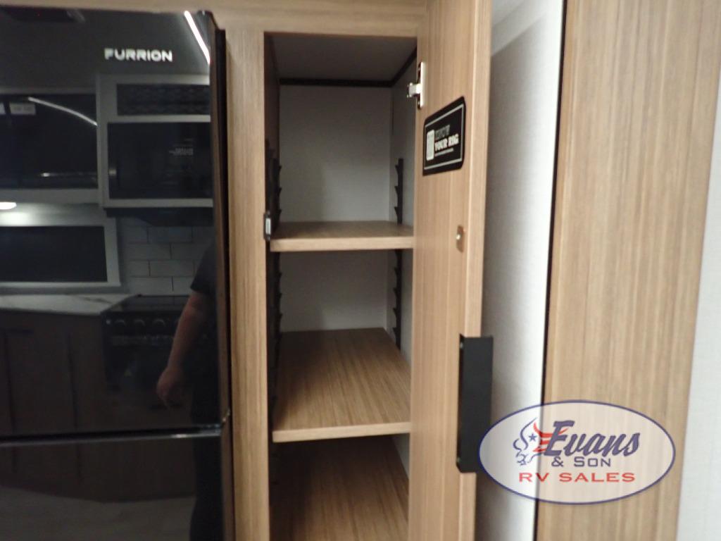 If you're looking to upgrade from a tent to a travel trailer, the time is now with this model! You will love having your own master bedroom up front with a queen bed, dual bedroom wardrobes and your own exterior entry door. The second entry door leads right into the combined kitchen and living area for added convenience. Your crew can dine or play a game around the U-shaped do-more dinette table or relax on the tri-fold sofa across from the entertainment center. These pieces of furniture will also double as your guests' sleeping space at night, and you have the option to choose luxury cinema recliners in place of the sofa if you don't need that much sleeping room. There is also a full walk-through bath to clean up in each day plus a fully-equipped kitchen to make meals!