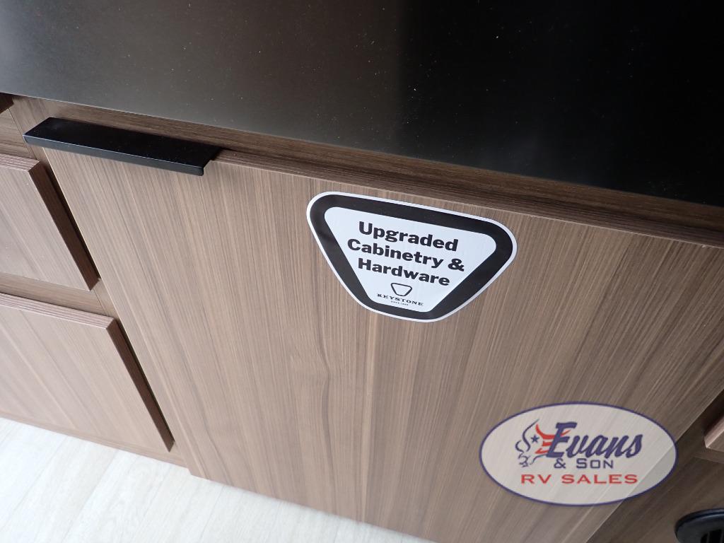 With any Keystone Passport Super Lite travel trailer you will enjoy lightweight towing and lots of interior comforts! The power tongue jack lets you hitch up at the drop of a hat, and the Dexter torsion axle rubber ride suspension will make towing easier than ever. You will appreciate having power stabilizer jacks for quick setup and an exterior convenience center to monitor tank levels. These trailers are constructed with a seamless, laminated and gel-coated filon exterior, 80% tinted safety glass windows, and a one-piece polypropylene underbelly. The interior will have you feeling right at home with residential durable Beauflor vinyl flooring, deluxe night shades, and seamless kitchen countertops to name a few comforts.