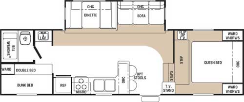 Available Beds | Queen, Jack knife Sofa, Booth Dinette |