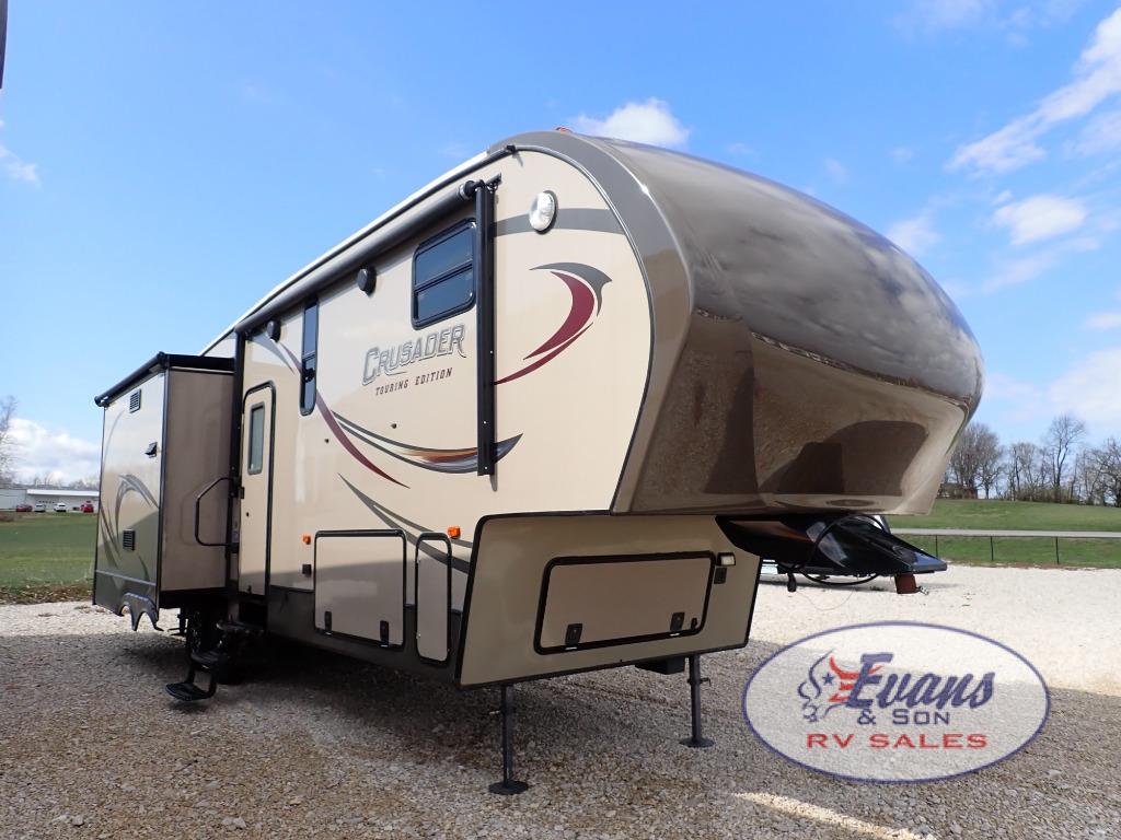 The 315RST Crusader fifth wheel by Prime Time Manufacturing offers triple slide, and a rear living area.