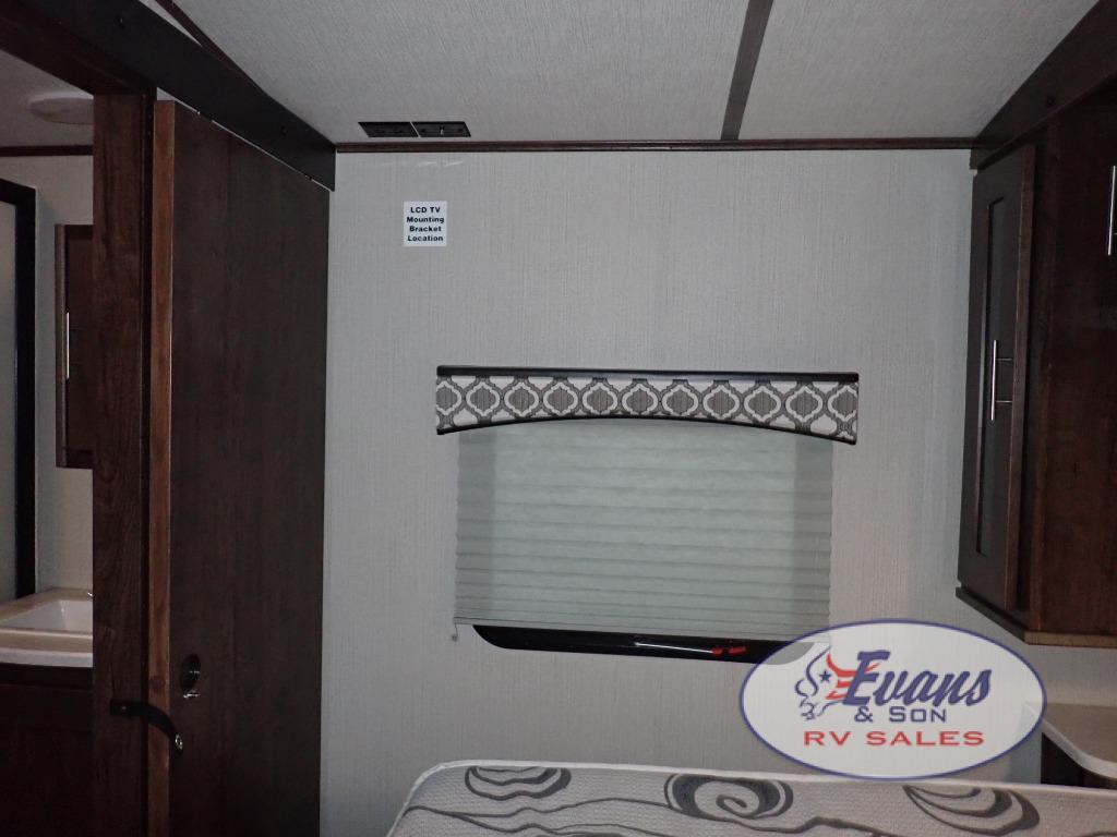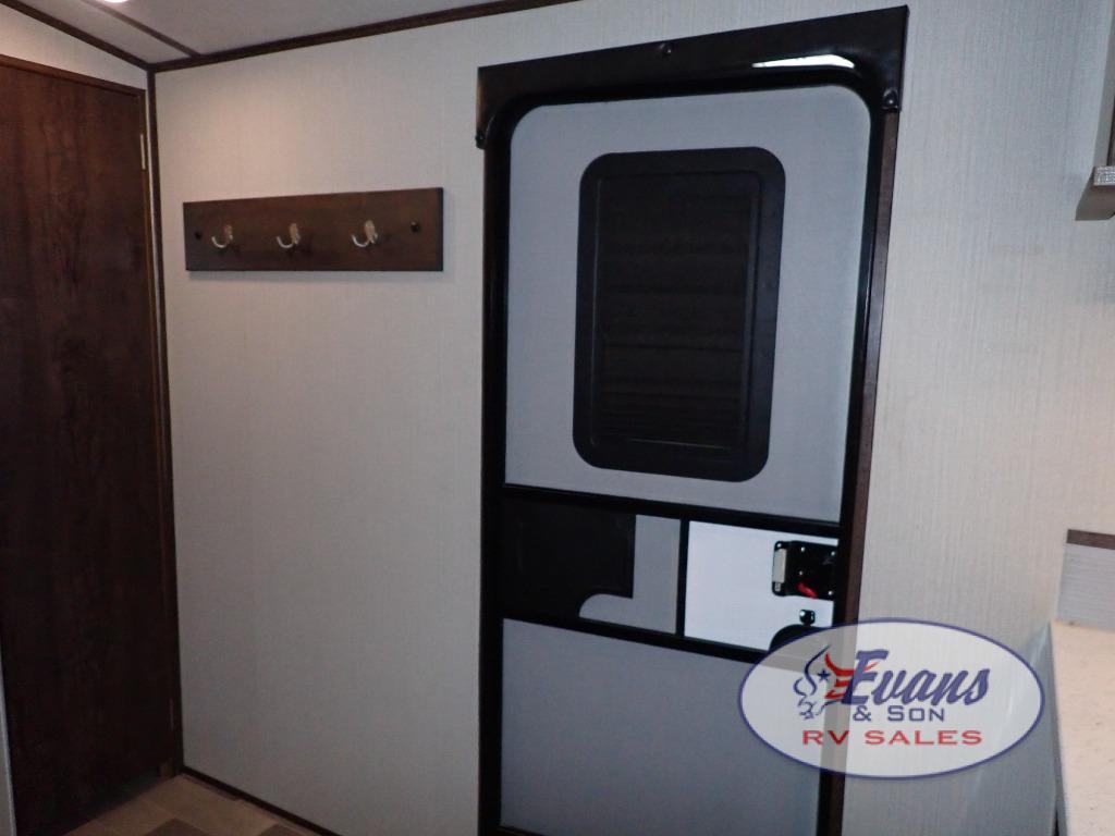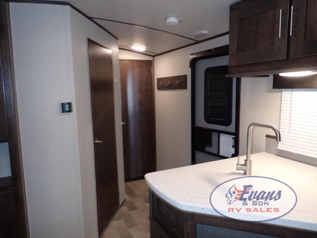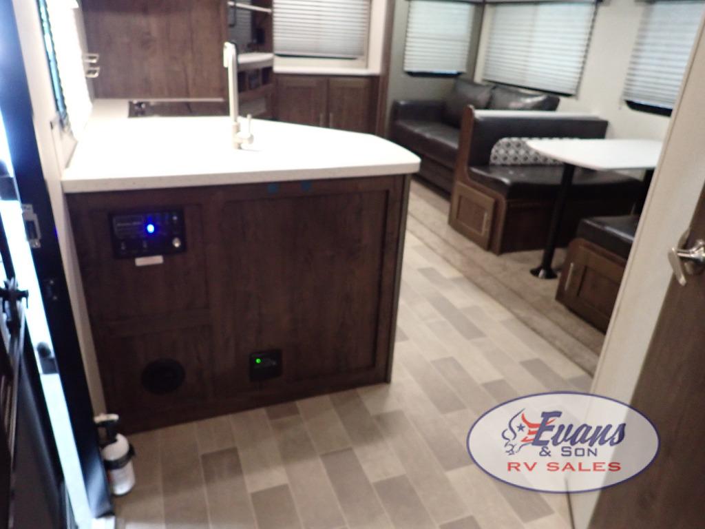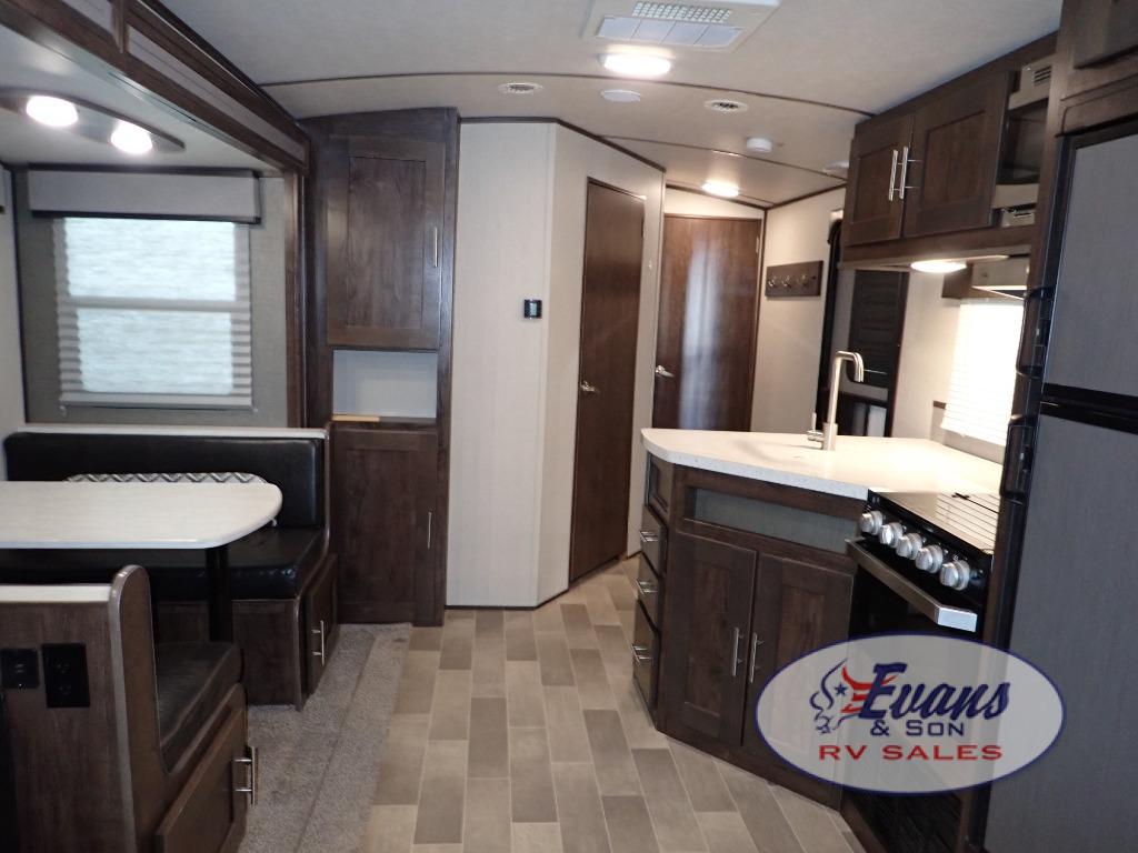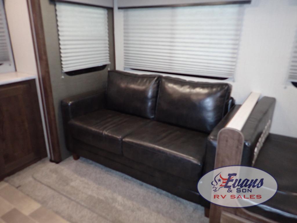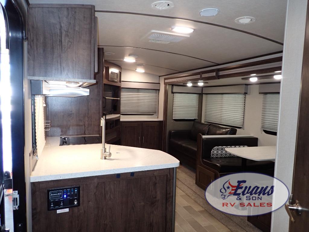 Each time you camp in this travel trailer, you can be sure to have a great time with your family. This unit features a private front bedroom with a king bed and a door to the double entry bath for your convenience. The single slide out with the tri-fold sofa and dinette provides floor space for the kids to wrestle with the dog. You can cook a meal just like you do at home with a three burner range, and clean up is a breeze with the high rise kitchen faucet. This travel trailer also includes a pantry for your dry goods, plus overhead storage for your valuables. Make this unit yours today!