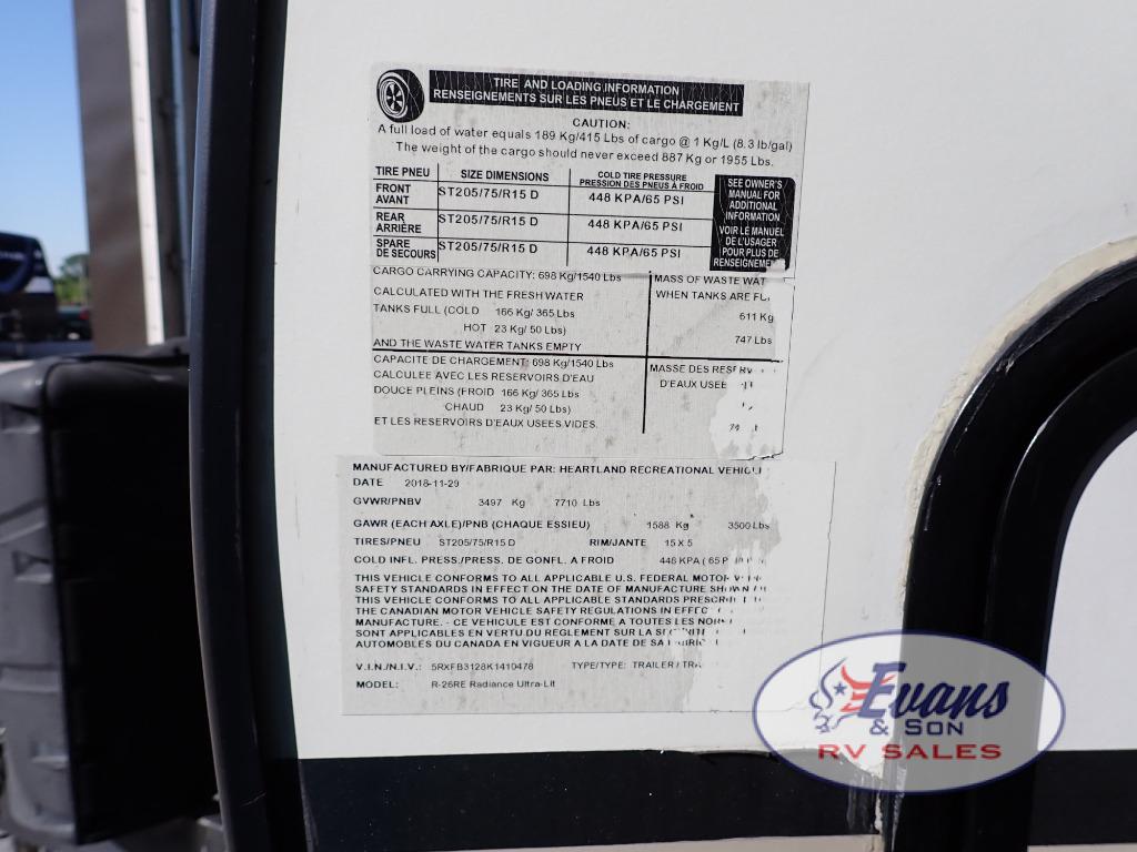 Cruiser Radiance Ultra Lite travel trailer 26RE highlights: