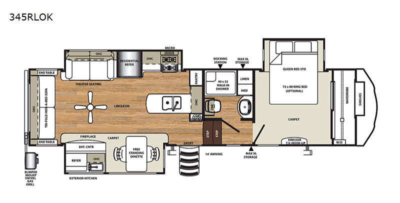 Forest River Sandpiper fifth wheel 345RLOK highlights: