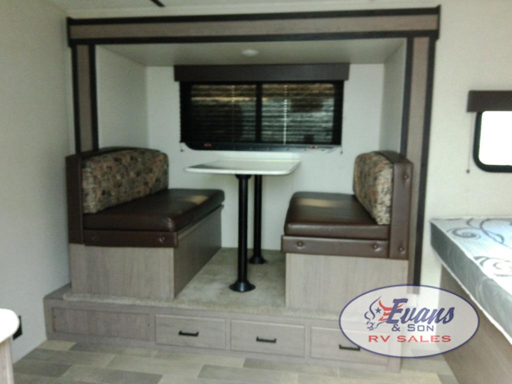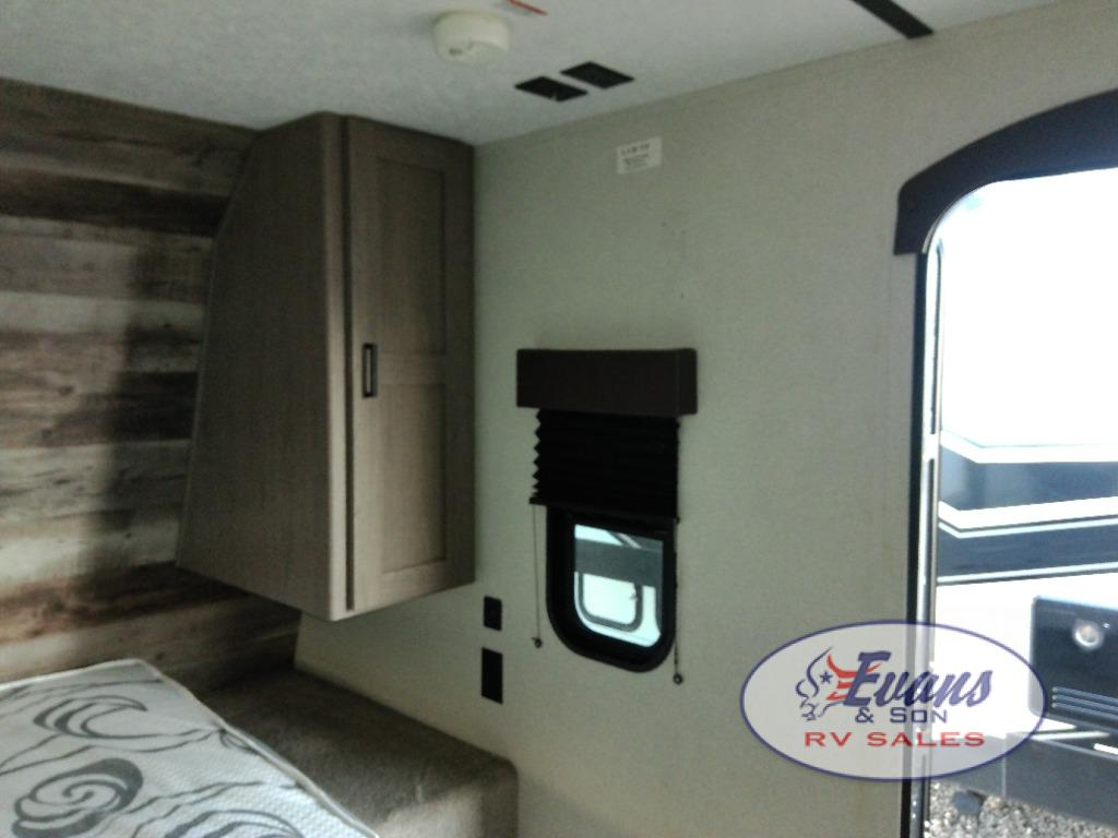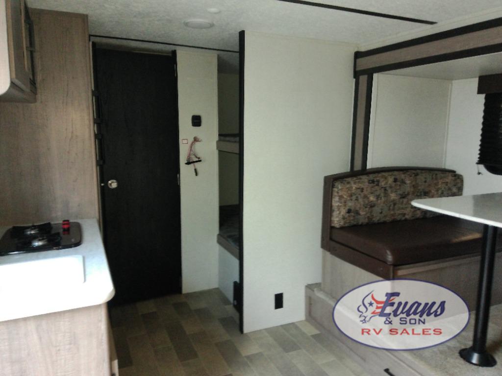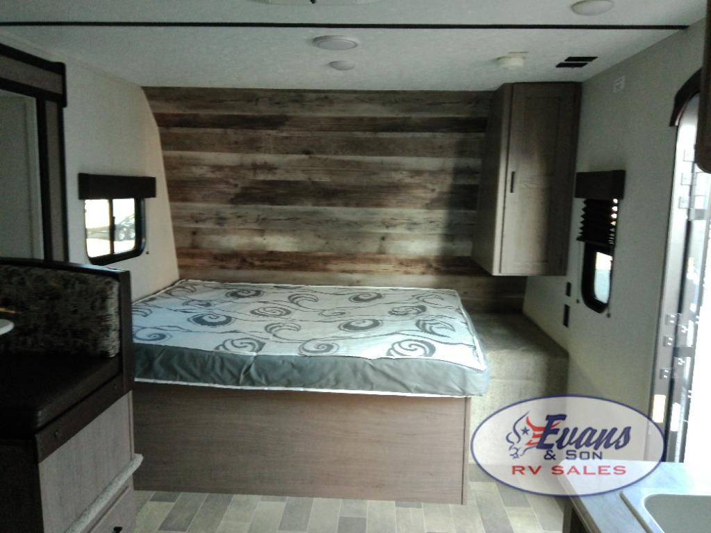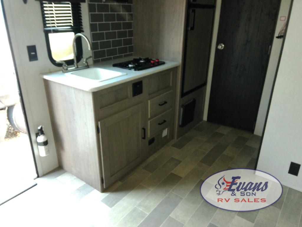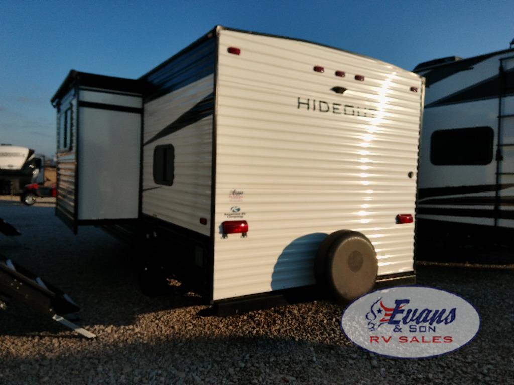 See the world through fresh eyes in the crisp and clean Hideout Single Axle travel trailers and toy haulers from Keystone RV! The powder-coated frame, cambered chassis, flex-pex tubing, and Dexter E-Z Lube axle will provide you with a durable foundation for all of your travels. You will also be amazed by the beautiful interior decor. The Platinum Maple cabinets, Burlap Shale wall board, and White Cascade countertops will deliver an upscale and modern space to enjoy while you are vacationing, and the wood plank feature wall, black cabinet hardware, and all-new backsplash will certainly add to that stylish vibe. The Furrion Bluetooth radio and blue LED exterior speakers will let you keep your summer parties sizzling, and you can also make your Hideout even more functional by adding solar panels and a Furrion back-up camera to the areas that have been prepped for these features.