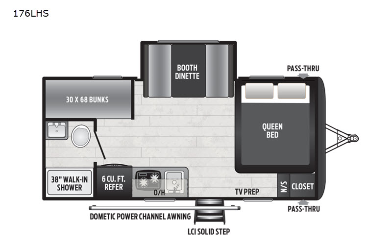 This Single Axle Hideout travel trailer is a great way for your family to get away and enjoy all that nature has to offer. There are bunk beds for the children, a booth dinette slide for added interior space when cooking or for when the kids are playing inside, and a queen-size bed for mom and dad. You will find plenty of storage for your clothing, dishes, or kitchen gadgets with the interior cabinets, and the pass-through storage compartment on the exterior can hold your outdoor games, fishing poles, and more. To help you enjoy spending more time outside, this unit comes standard with a power awning for a little protection from the sun, as well as exterior speakers to hear your favorite tunes.
