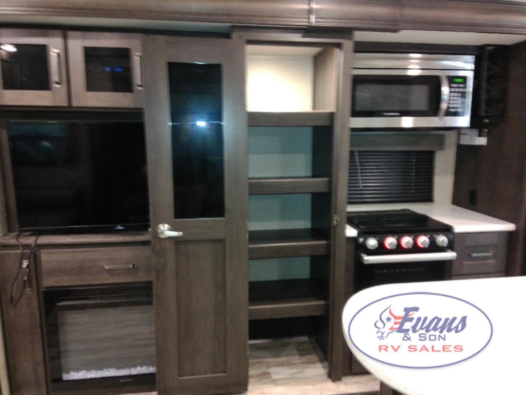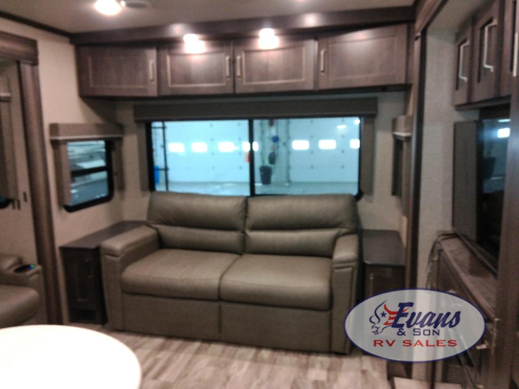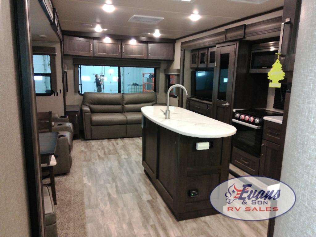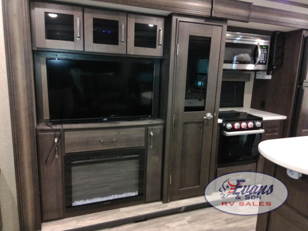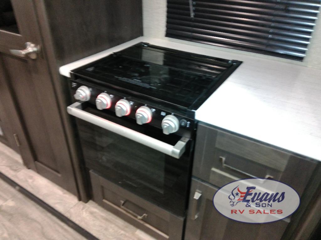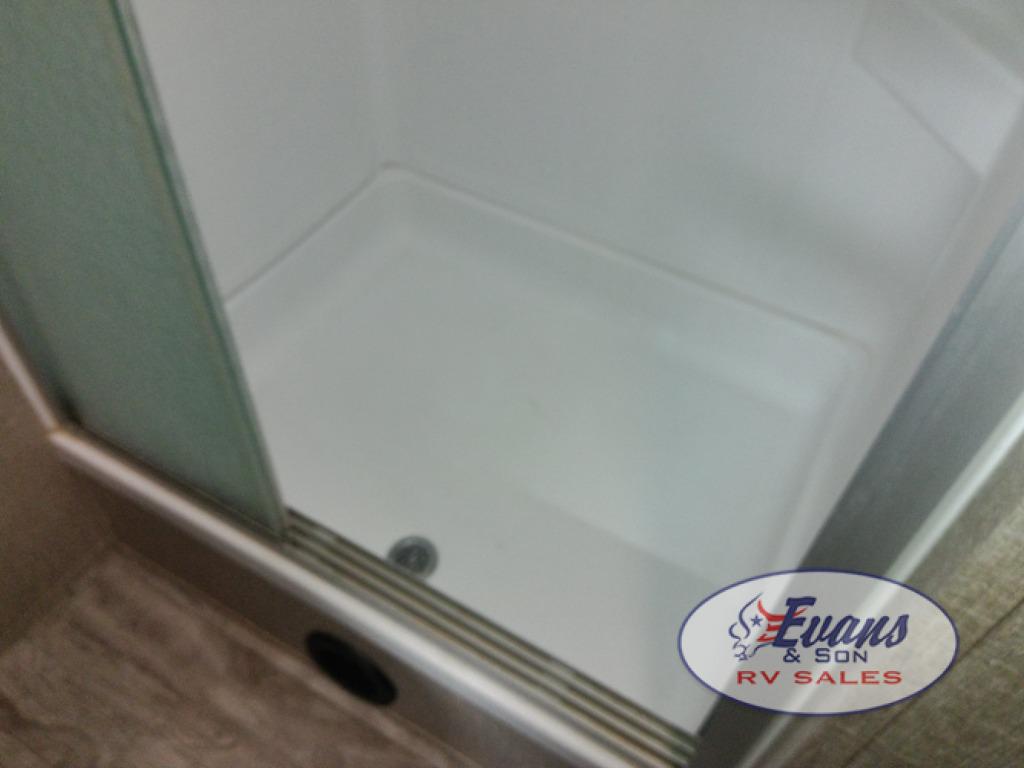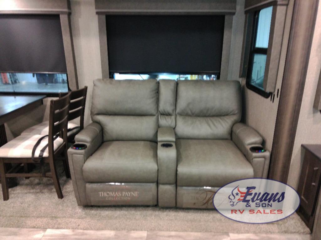 You won't want to camp any other way once you step inside this travel trailer! You can relax in true comfort each night on either the rear tri-fold sofa or the theater seating which is directly across from the entertainment center with a 40" HDTV and fireplace. You can prepare delicious home cooked meals in the gourmet kitchen with the three burner cooktop and the kitchen island, plus there is a 12 cu. ft. refrigerator to store any leftovers and a hutch to store your nice dishes. You can even choose to add the optional free standing dinette with ottoman storage to enjoy your meals at. Start each morning feeling squeaky clean after showering in the 30" x 36" shower with a skylight above for added natural lighting!