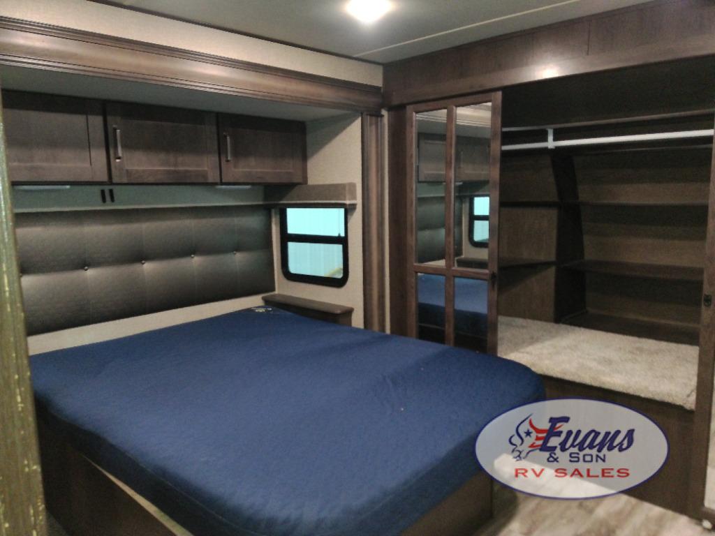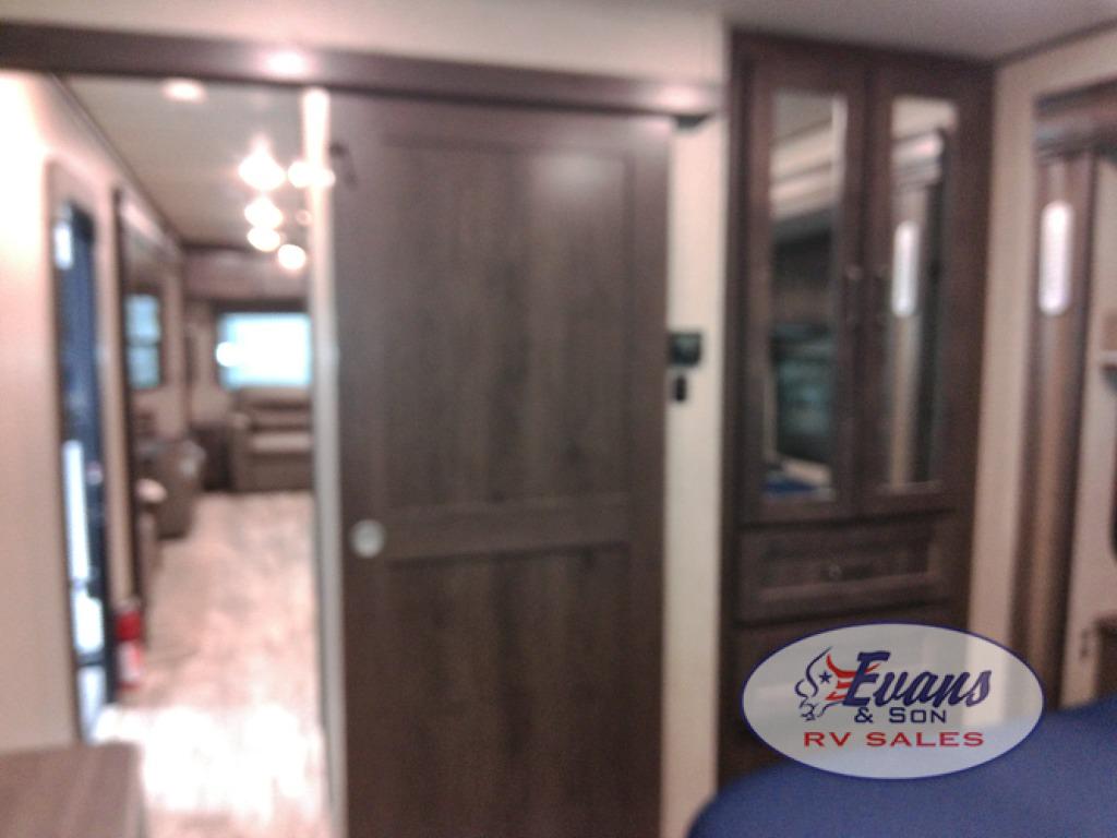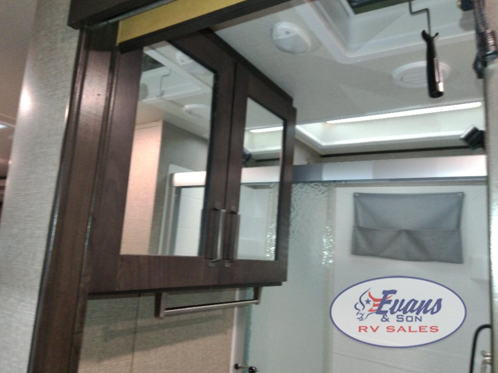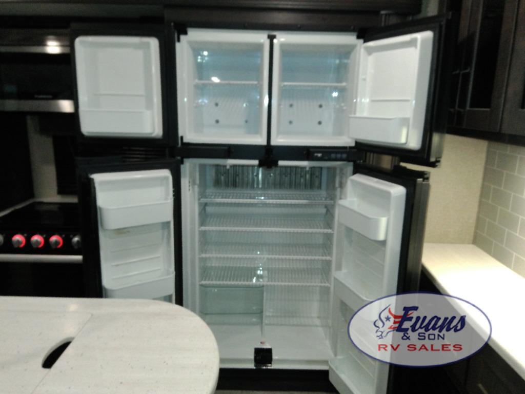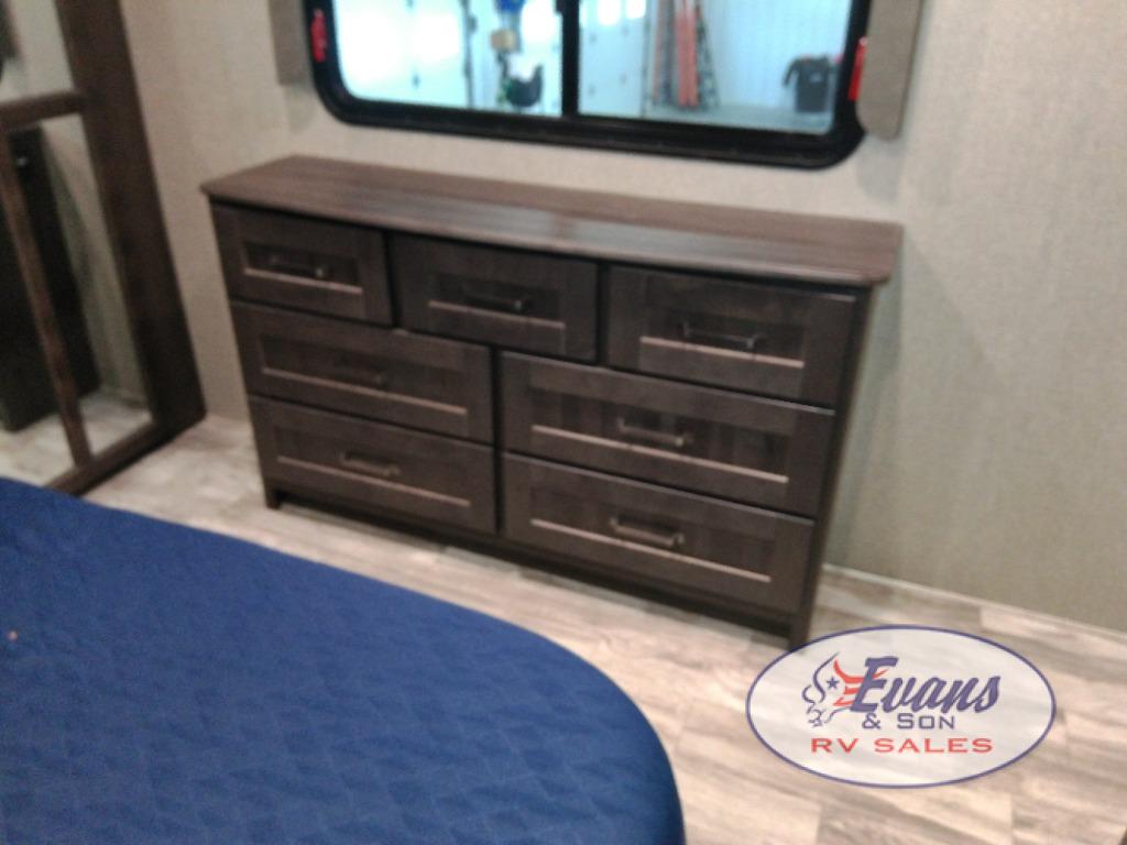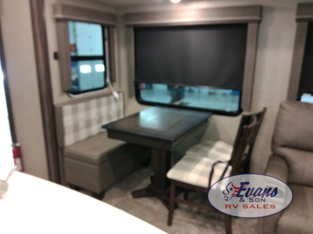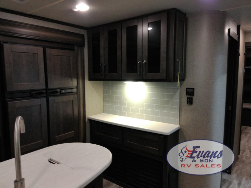 You won't want to camp any other way once you step inside this travel trailer! You can relax in true comfort each night on either the rear tri-fold sofa or the theater seating which is directly across from the entertainment center with a 40" HDTV and fireplace. You can prepare delicious home cooked meals in the gourmet kitchen with the three burner cooktop and the kitchen island, plus there is a 12 cu. ft. refrigerator to store any leftovers and a hutch to store your nice dishes. You can even choose to add the optional free standing dinette with ottoman storage to enjoy your meals at. Start each morning feeling squeaky clean after showering in the 30" x 36" shower with a skylight above for added natural lighting!
