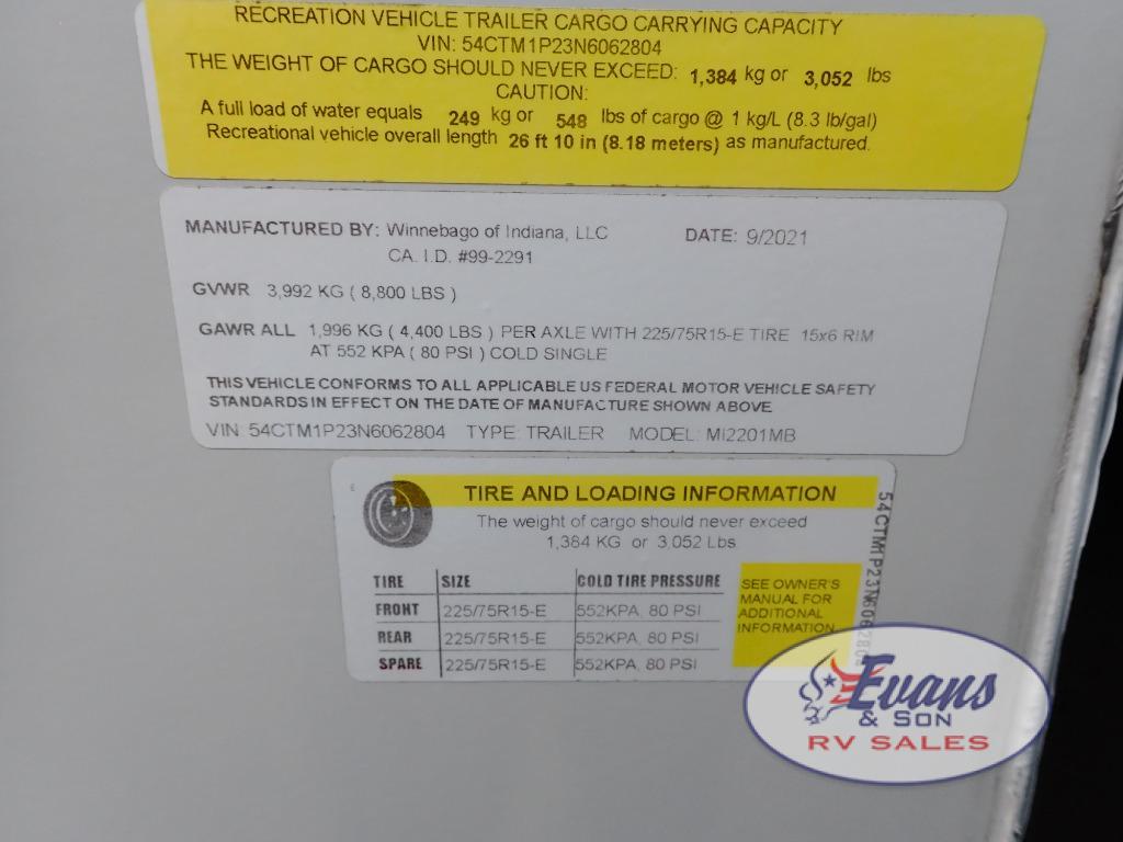 Used 2022 Winnebago Industries Towables Minnie 2201MB