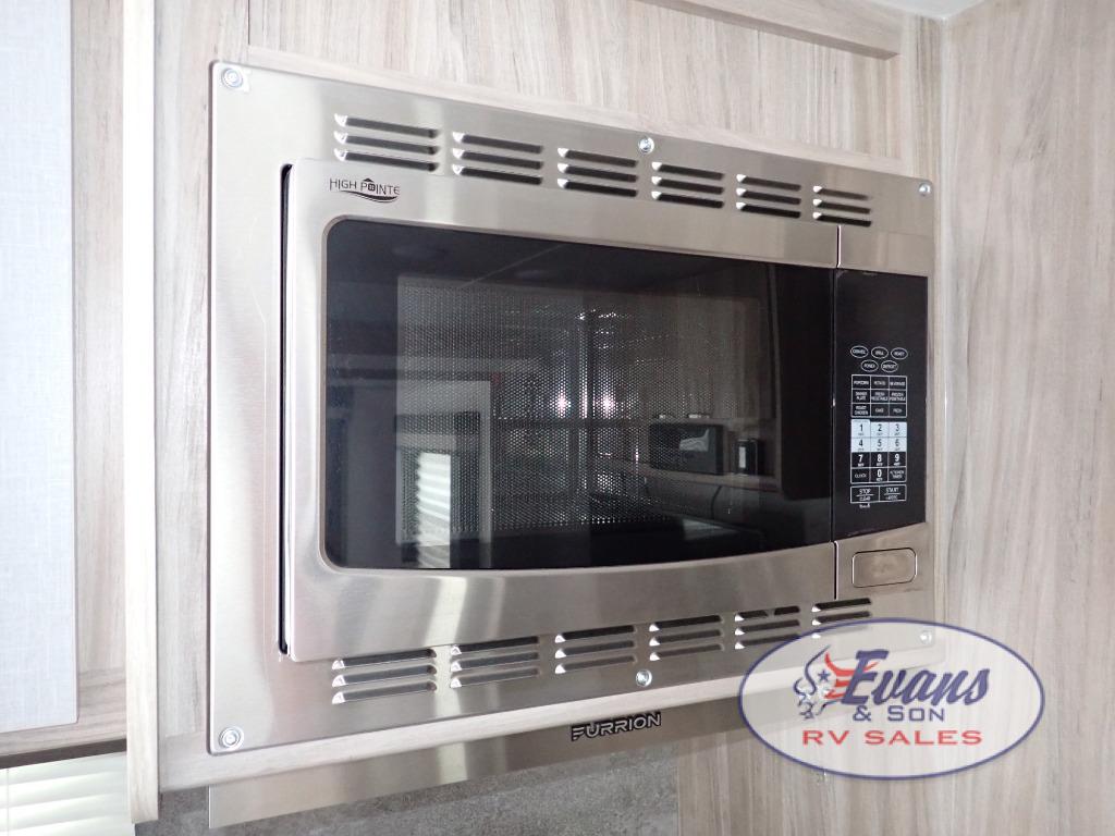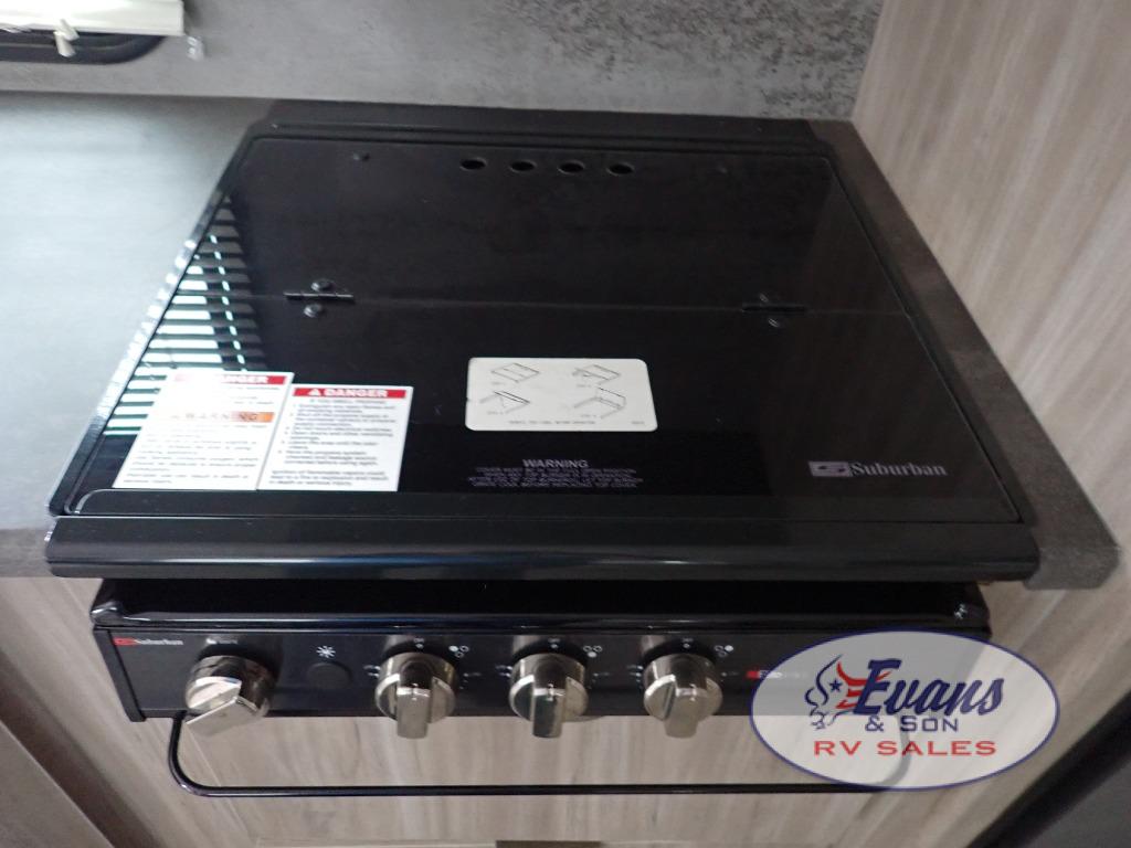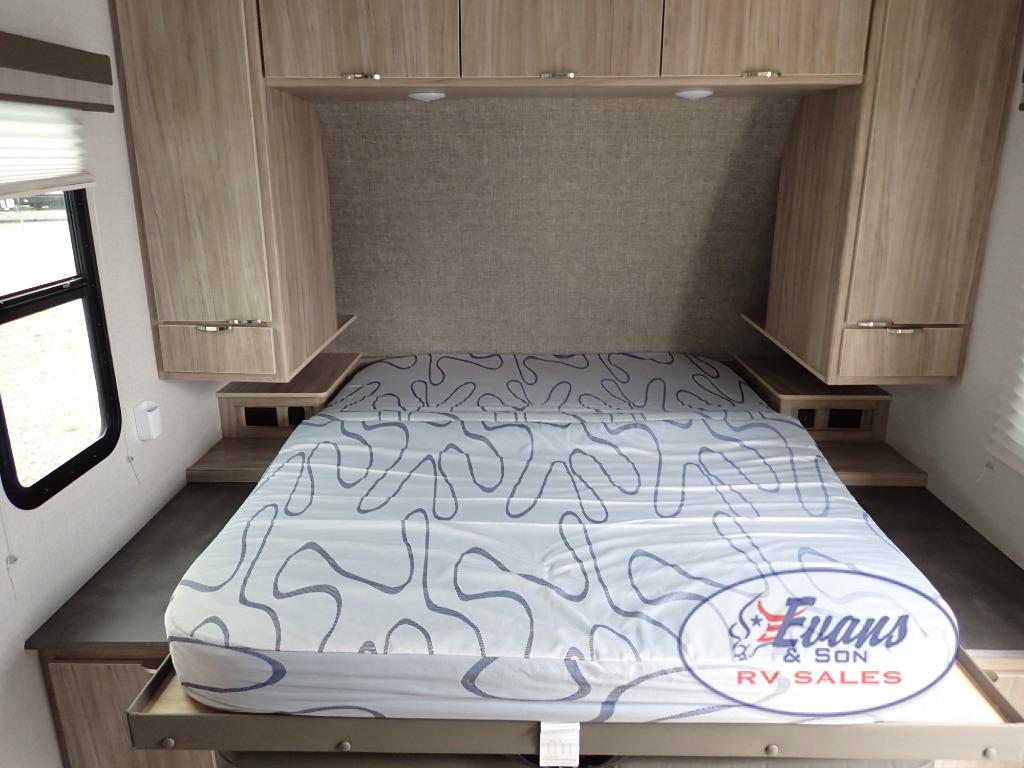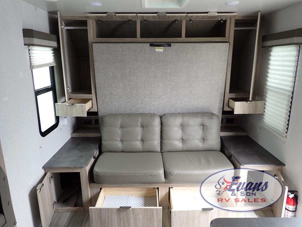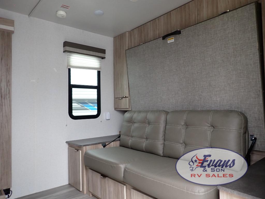 Versatility comes standard in this spacious travel trailer that can sleep four people each night. The Murphy bed will provide a great night's rest each night, and it can fold away in the morning to relax on the 72" sofa. There are dual wardrobes on either side of the bed for your clothes, and the spacious full rear bath is an added comfort you won't want to camp without. Your guests can sleep on the U-shaped dinette slide out when it's not being used to dine at, and there is an LED TV in the living area to enjoy movie night. This model also includes a three burner cooktop, a convection microwave, and a 10.3 cu. ft. 12V refrigerator for perishables.