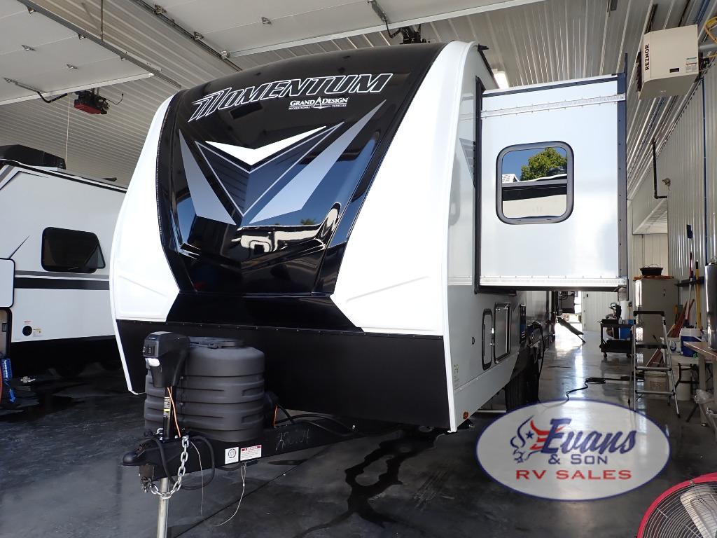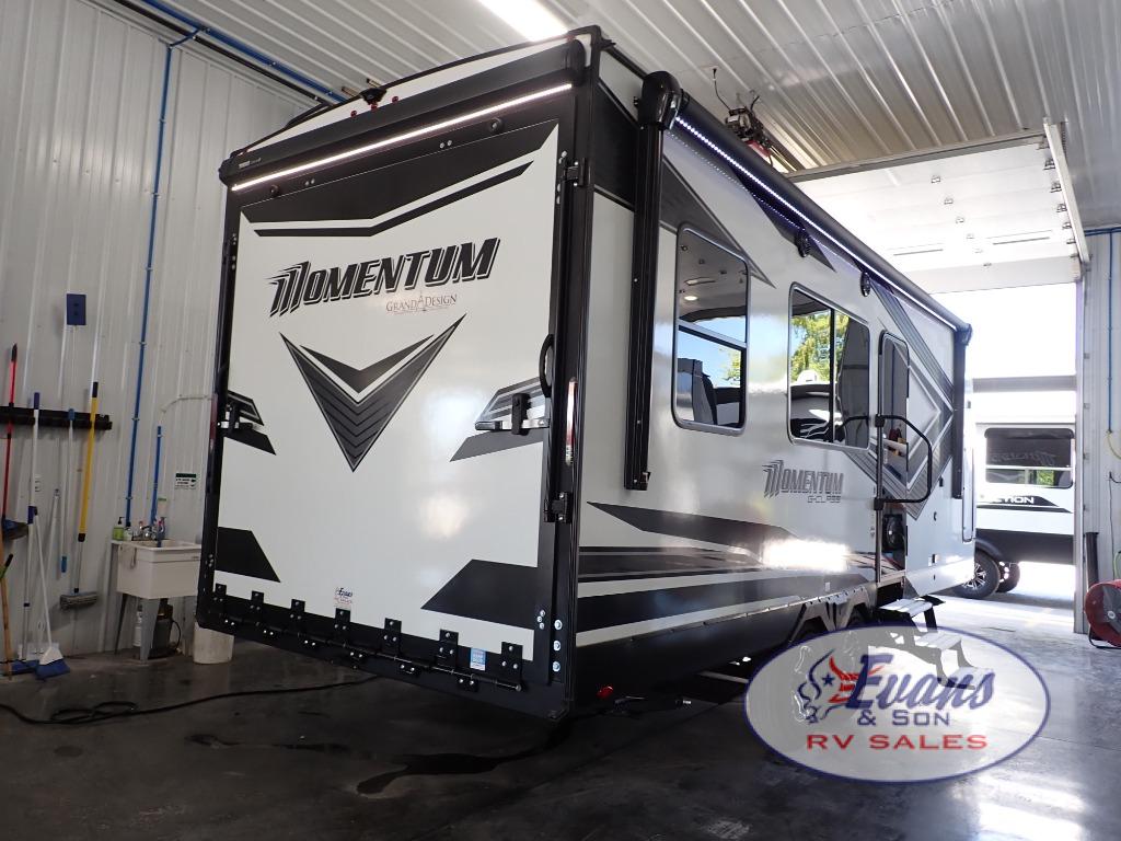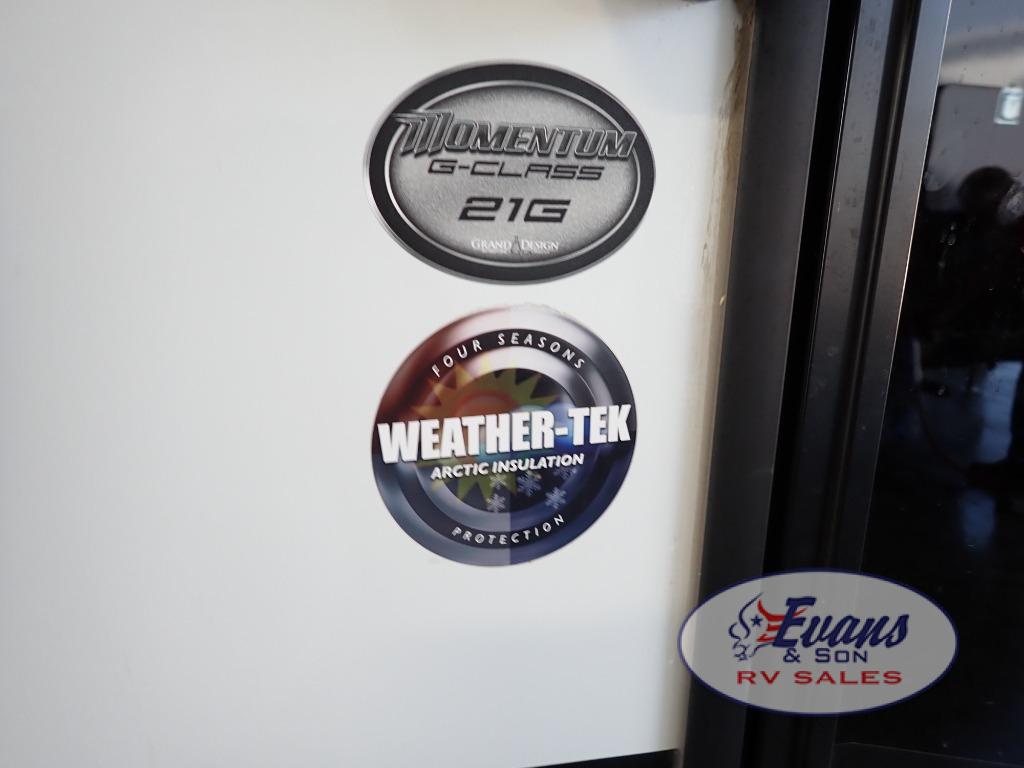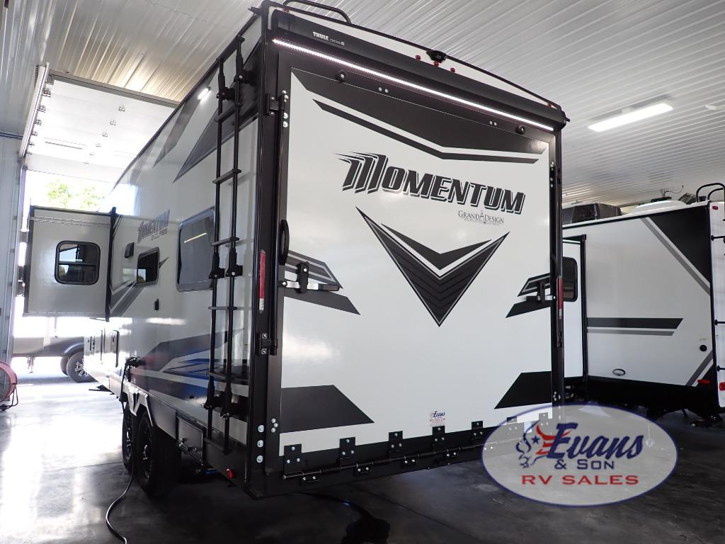 Are you looking for adventure and fun? The Momentum G-Class toy hauler by Grand Design will help you find it! You can explore during any season you choose with the Insulation Package that includes a heated and enclosed underbelly with suspended tanks, a high-capacity furnace, a moisture barrier floor enclosure, and cabinet-mounted heat ducts. Each model includes a fuel station with an interior and exterior gauge, a dovetail rear rend, and 2,500-LB tie-downs anchored into the chassis. Throughout the Momentum G-Class interior, you'll enjoy many comfortable features like large panoramic windows, a shower skylight, USB chargers in the bedroom, and residential cabinetry.